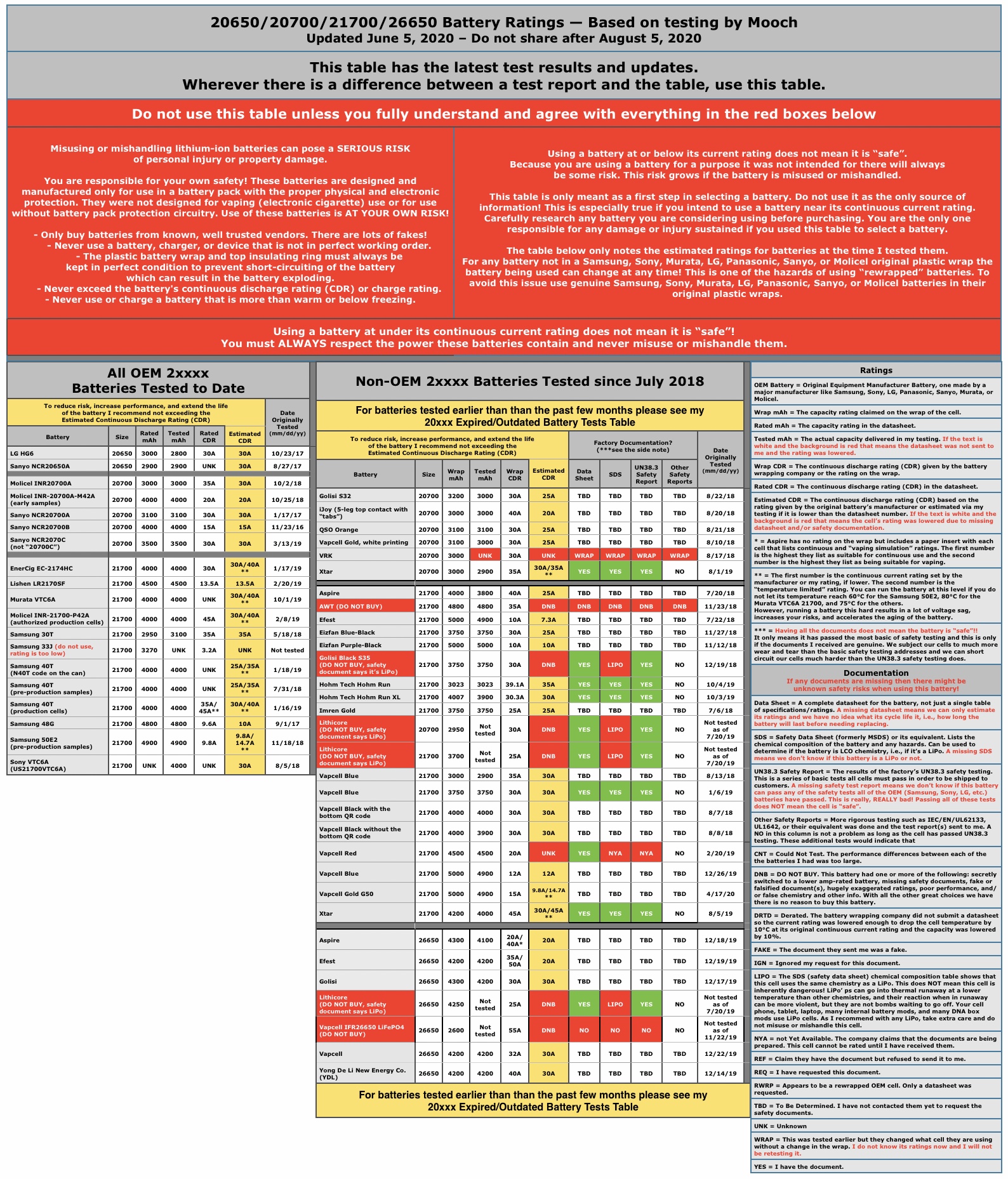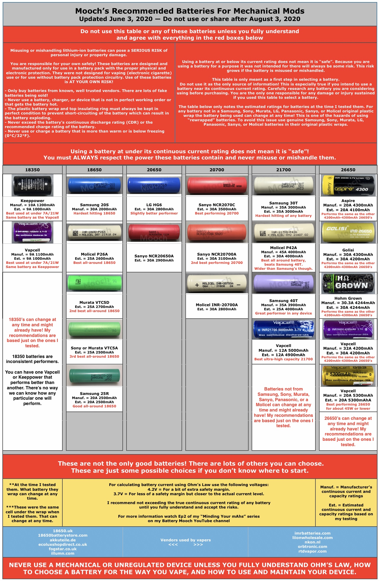19. Juni 2020 um 08:12 #3 Leistungseinstufung mAh/A 20650/20700/21700/26650 Mooch vs. HerstellerLeistungseinstufung mAh/A 14500/18350/18500 Mooch vs. Hersteller