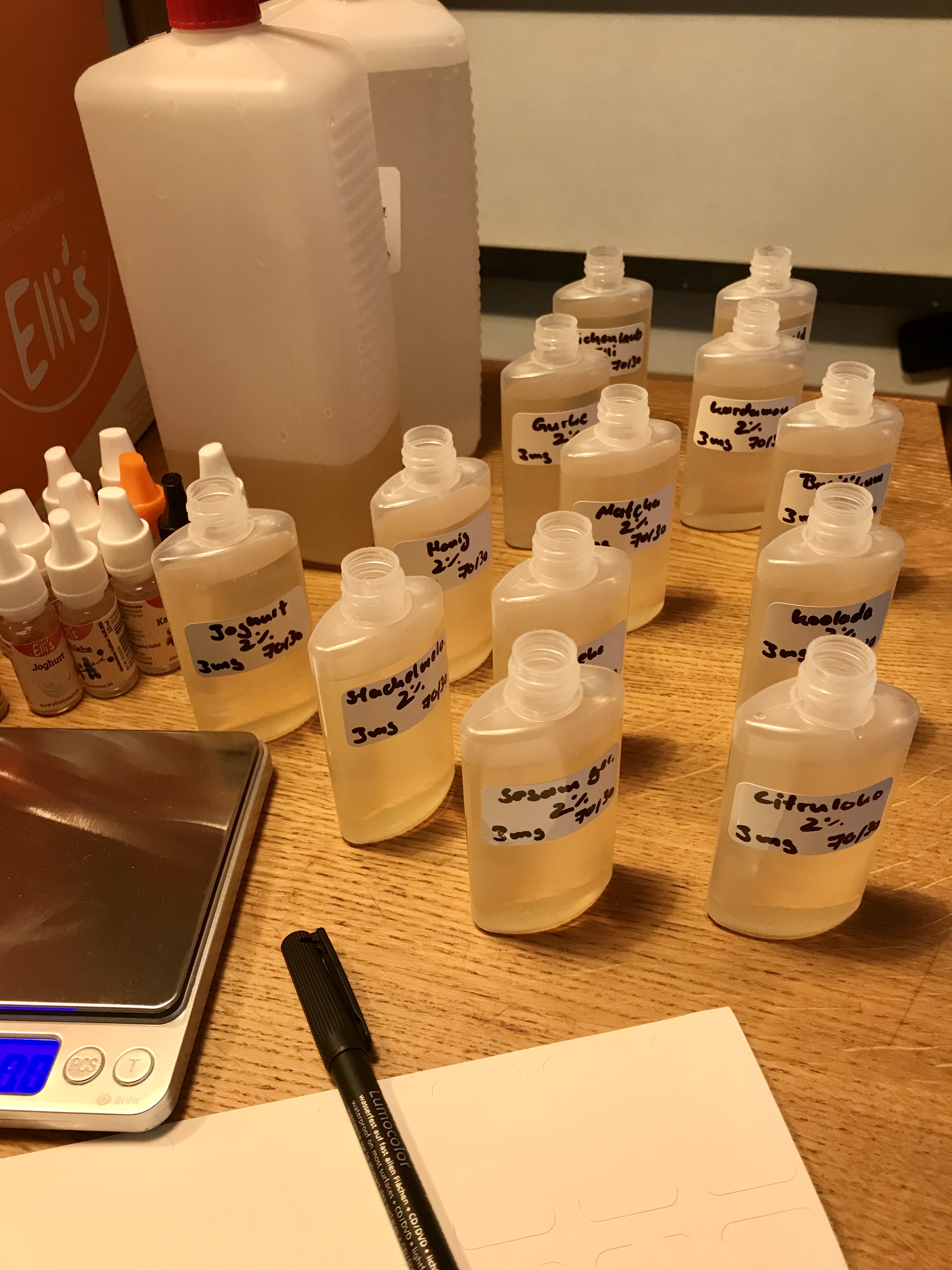 Bald sind meine 2 Liter vorgemischte Base wieder leer und da ich hier noch gut 100 Shots liegen hab, werden dann wieder einige kleine Flaschen frei. Dummerweise hab ich letztes Mal fast alle entsorgt bzw. wegen "Aufmachfaulheit" einfach aufgeschnitten. Und nu stehen hier massig Aromen rum, die alle auf Abfüllbehälter warten. Dabei hab ich so viele leckere Ideen im Kopf ... hach ja, die "Leiden" des Selbstmischers