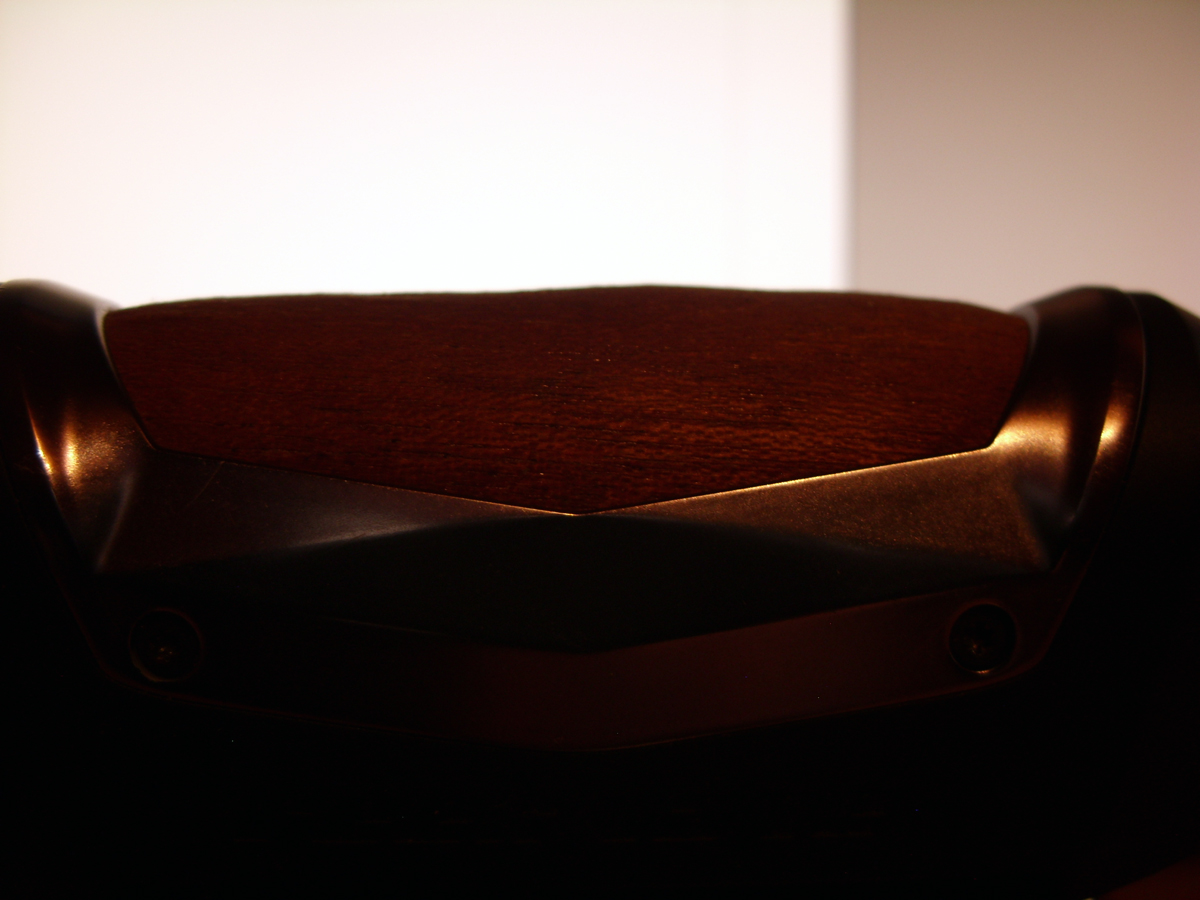 Das ist nur ein 1. Versuch. Weil die Aegis keine ebene Fläche besitzt, sondern so einen "ergonomischen" Knubbel in der Mitte, reißt das dünne Furnier oben oder unten. Dagegen muss ich mir etwas einfallen lassen. Hat wer eventuell irgendwelche Ideen?