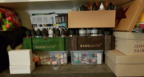 Also, ich habe um die 8-10 Fertiggemischte Liquids je 120ml, zum teil Longfills und Shortfills.