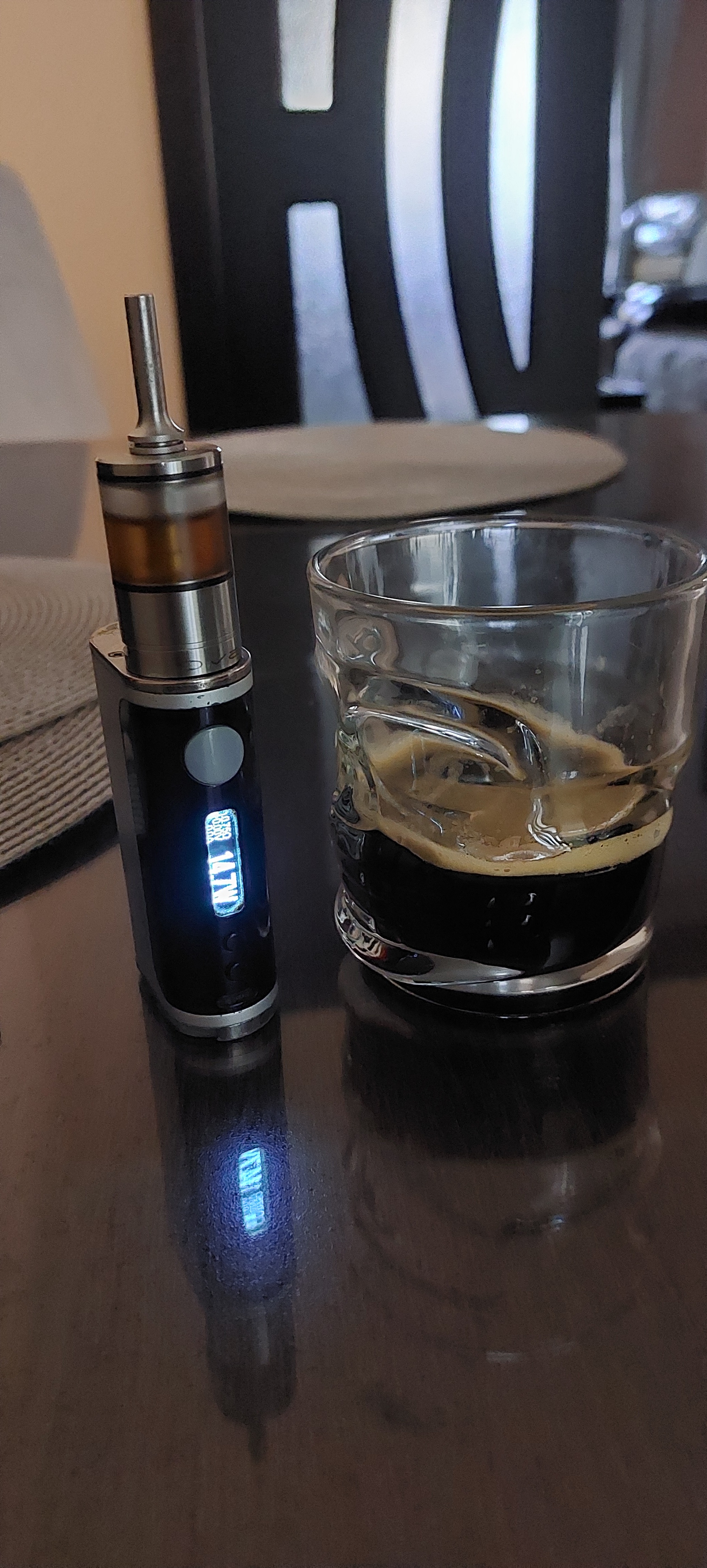 Jetzt benutze ich Dvarw. Darin den a&l Indiana v2. Zuerst habe ich einen kurzen Driptip benutzt, jetzt einen langen. So schmeckt es mir am besten.