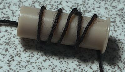 Der Tank lässt sich wunderbar leicht auseinanderschrauben und man sieht jetzt, dass der Kamin-Durchmesser doch recht groß ist bzw. für ein DL-Dampfen dimensioniert wurde. Für uns MTL-Dampfer kann man nun aber ein verjüngendes POM-Röhrchen zur Kamindurchmesserreduzierung einlegen, das aber bei mir ziemlich wackelte. Hier nahm ich einfach ein paar Wicklungen mit meinem Zwirn, der dann dieses Röhrchen sehr gut im Kamin fixierte: