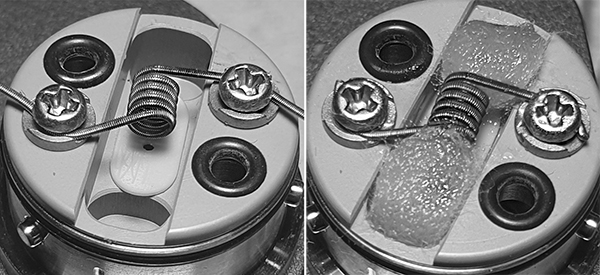 Beim A(rise) wird durch eine Drehung des Tanks (und nicht des Closing-Rings wie beim N(duro!) zum einen die Liquidzufuhr verringert bis verschlossen, sondern zum anderen wird gleichzeitig auch die Luftmenge äußerlich durch eine veränderbare Öffnung bestimmt. Dieser Liquid-Schließmechanismus ist eine Verbesserung in Anlehnung an die schon erprobten Ideen beim N(duro) & Squape-X: