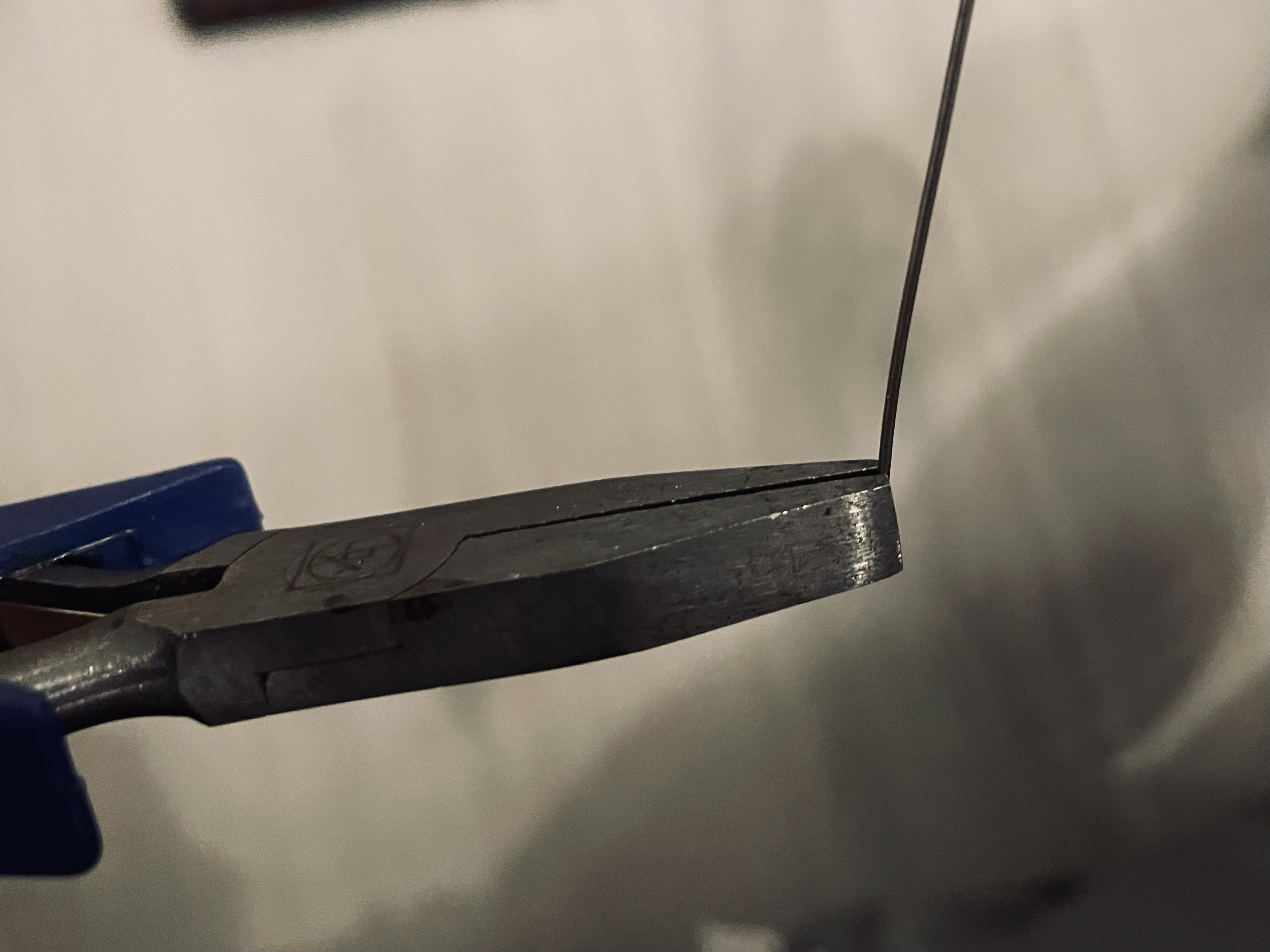 Ich klemm den Draht mit dem äußersten Ende der Zange fest.