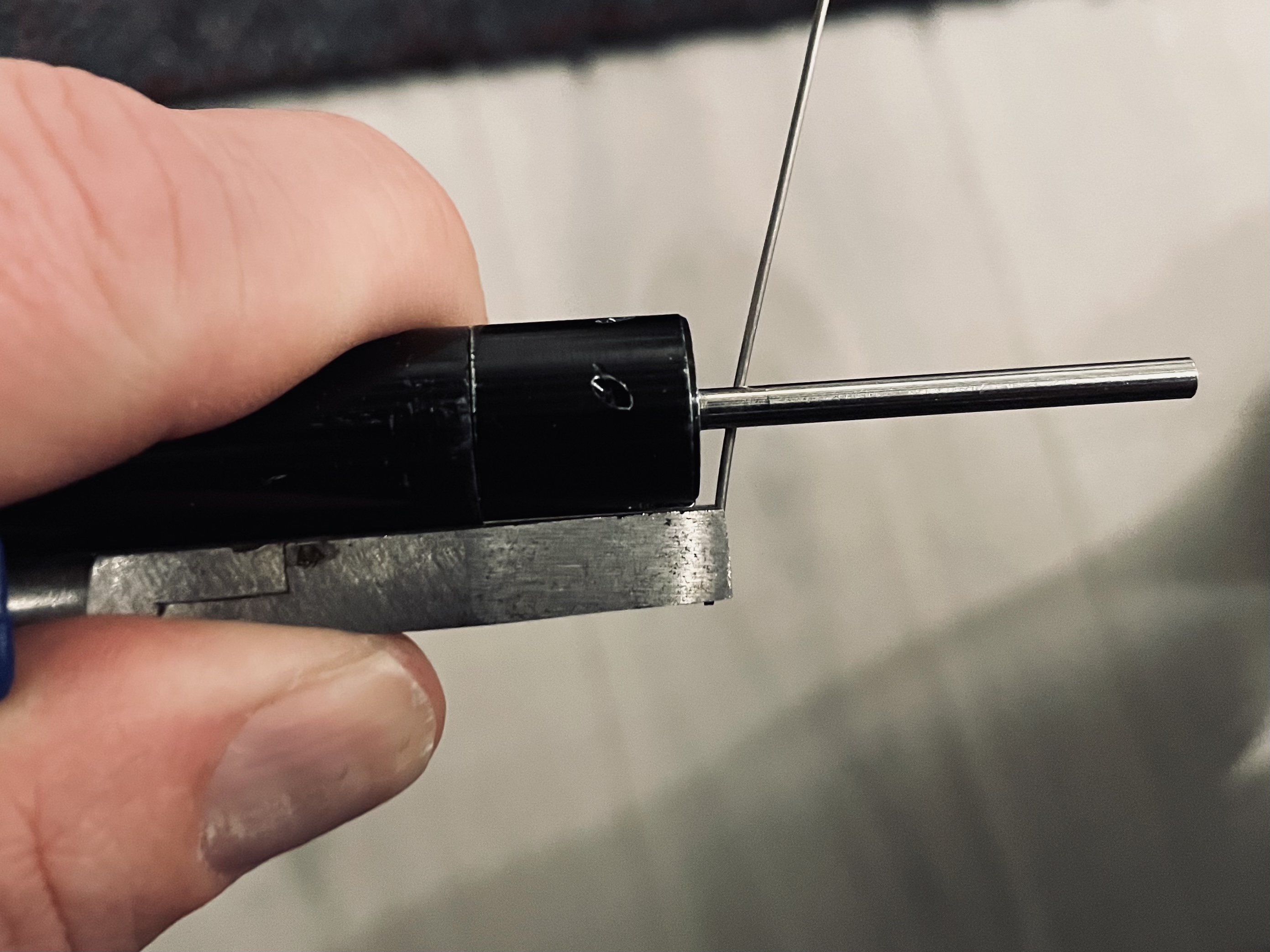 Ich mach das immer mit ner Zange, dann ist mein dicker Daumen nicht im Weg und ich kann direkt ordentlich Zug auf den Draht geben. Hab’s mal auf die Schnelle mit Runddraht fotografiert, da ich grad nix gewickeltes hab.