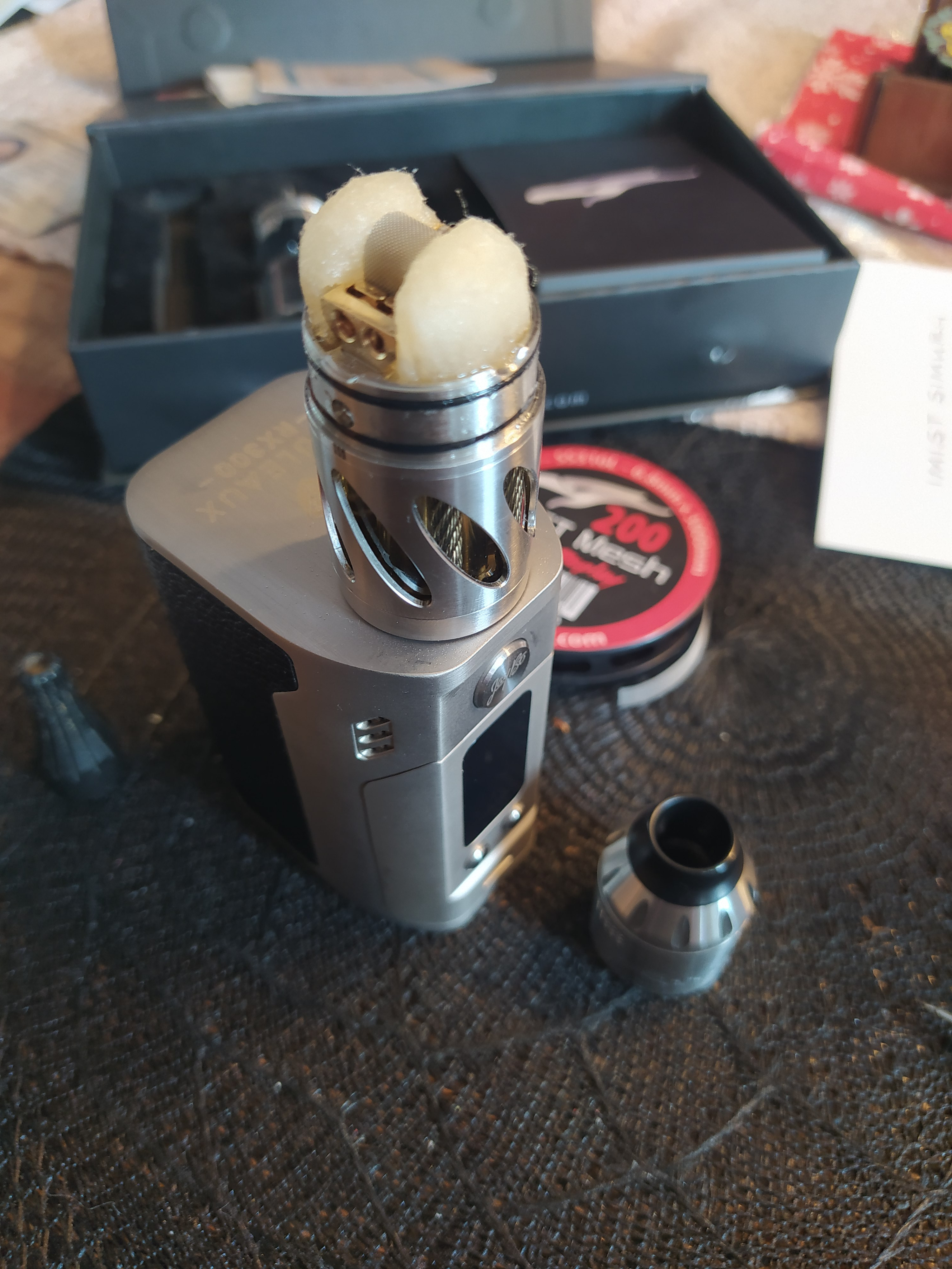 Die Außenseiten sind aus silbernem Flugzeug-Aluminium mit einem Stahlaufsatz für den 510er Anschluss. Er ist normalersweise auch in schwarz und weiß erhältlich. Durch mehrere Einsätze ist er mit unterschiedlich großen VD-Durchmessern compatibel. Gesteuert wird ein 18650ger Akku mit einem Evolv DNA 60 chipset.