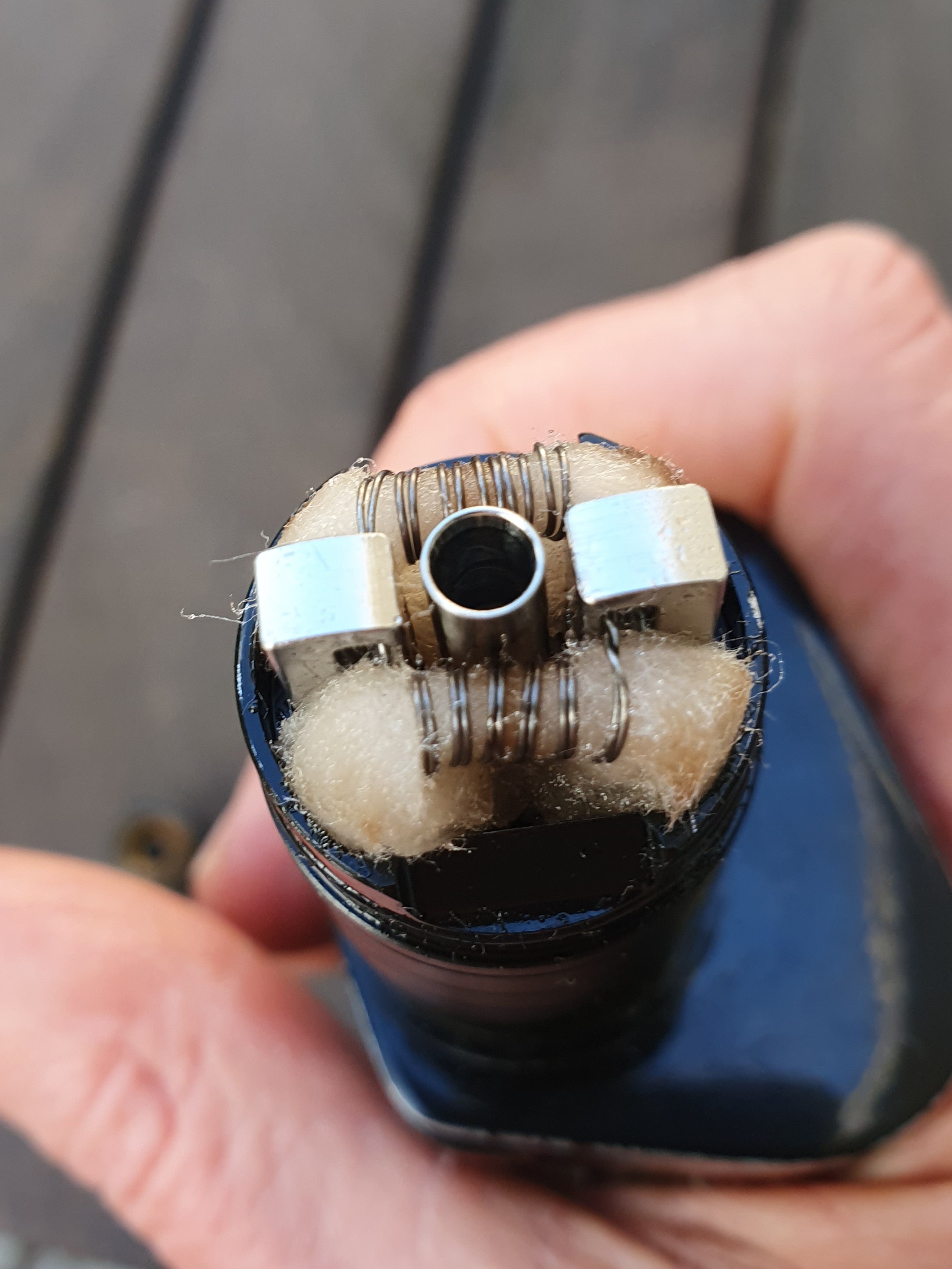 Neue Coils und Watte für den Extreme. Das sind 2 Parallelcoils aus Kanthal GA28, gedampft bei 60 Watt