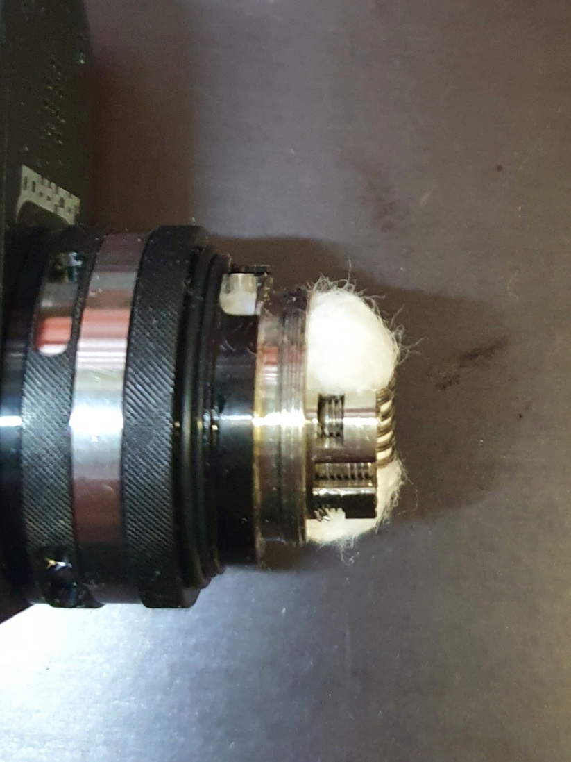 Bei einem meiner vorherigen Versuche hatte ich die Coil schon etwas tiefer. Oberkante war etwa auf Höhe der Schrauben. Mit einer 3,5mm Coil war der Verdampfer dann extrem restriktiv. Deswegen heute der Versuch die Coil höher zu positionieren. Geschmacklich wird eher die Süße betont. Alles andere geht eher unter.
