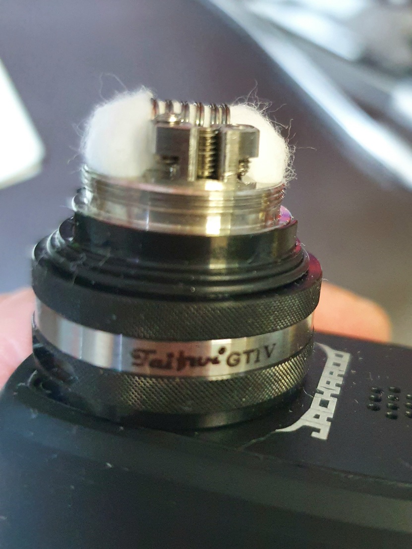 Mit meinem GT4 Clone habe ich ja so meine Probleme mit Inkontinenz. Egal was ich bisher mit dem Verdampfer angestellt hatte, lief der irgendwann aus. Der Geschmack war auch nicht der Beste.
