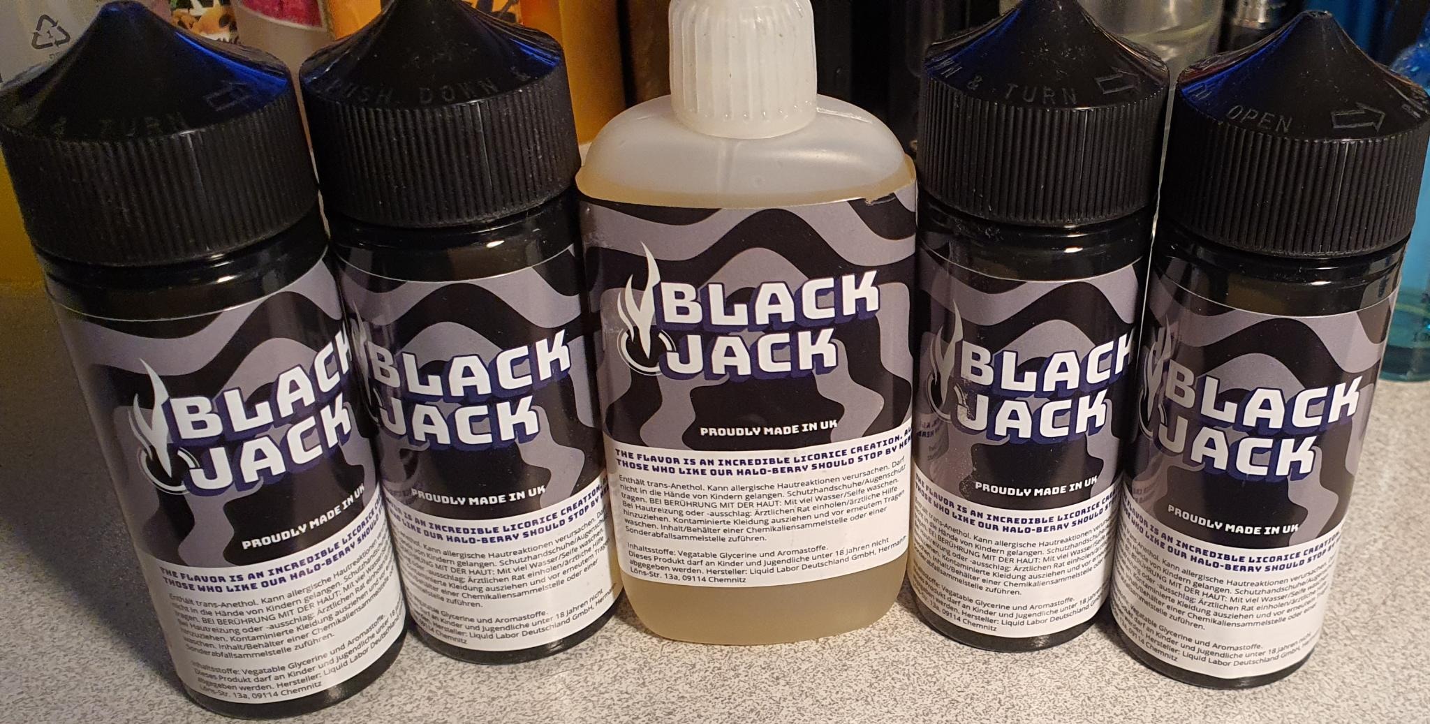 Jetzt habe ich mal mein neues Lakritz/Salmiak angesetzt (in der Mitte), das ich hier gleich 5 x auf Vorrat gekauft habe, da es irre dem leckeren WURZEL ähnelt, was es aber leider nicht mehr gibt: https://liquidlabor.eu/Black-Jack-Shortfill