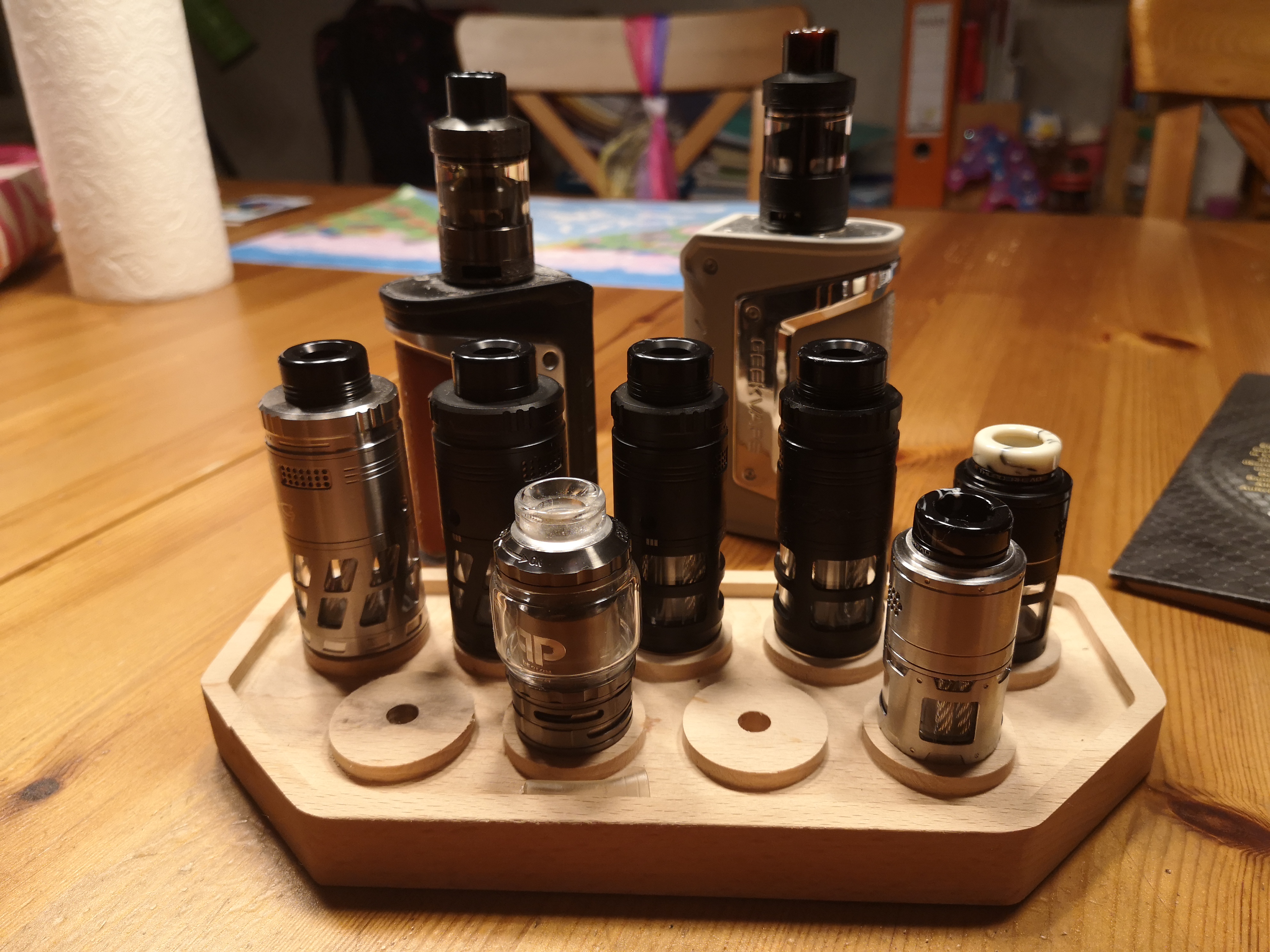 2x Simurg X30, 2 kleine Simurg, 2x Artemis, 1x Fatality M25 und im Hintergrund 2 Dead Rabbit R Tank. Sollte doch hoffentlich reichen, bis ich wieder wickeln kann.