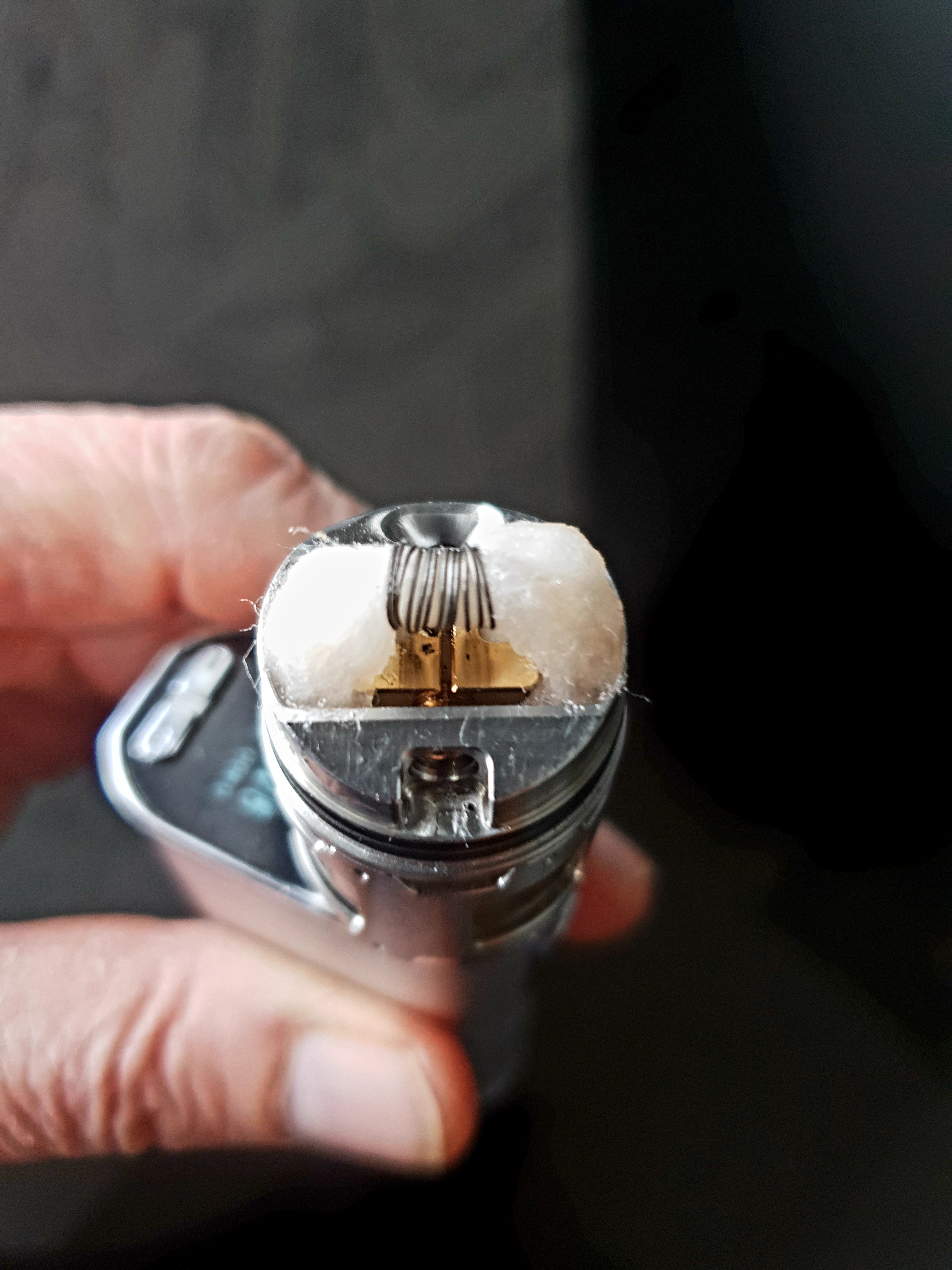 • Aus der Nummer Verbandwatte bin ich wieder raus. Obwohl wirklich Null Wattegeschmack vorhanden war, schmeckten die Liquids etwas "scharf". Daher eben den Artemis neu mit Coil Buster Vape Cotton bestückt. Das sind Muji ähnliche Wattepads die sich, wenn man erstmal die richtige Menge heraus gefunden hat, super einfach zu verlegen ist. Geschmacklich 1 A mit spitzen Saugverhalten. Ich habe gerade einen halben Tank in einem Stück weg gedampft und die Watte ist immer noch klatschnass.