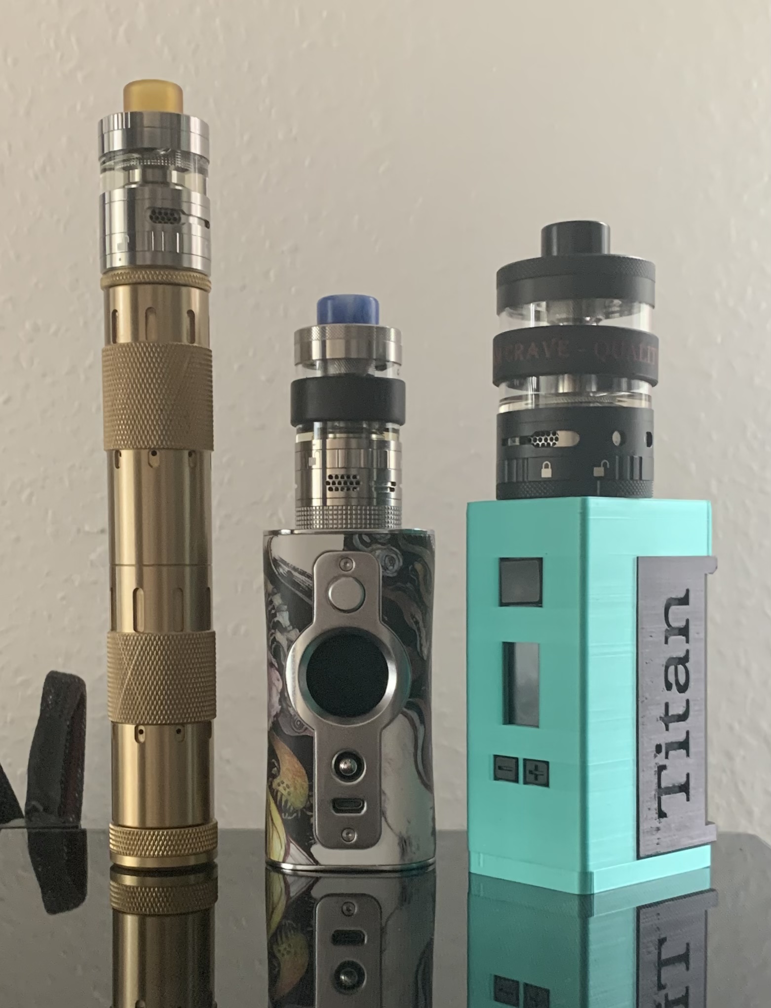 Ok, nochmal Watte rein, Liquid drauf und bei vorsichtigen 45 Watt angedampft. Laues Lüftchen. Ok, 55 Watt ... oh ja, da kommt schon was ... 60 Watt nu wird der Dampf auch warm. 70 Watt ... Oh weia, ich geh mal lieber nach draußen ...