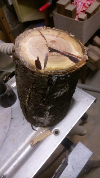 Mit einem Gedanken im Kopf raus zum Brennholz und ein schönes Stück Pflaumenholz gesucht ...Gefunden und gleich grob auf der Tischkreissäge in Form gebracht :
