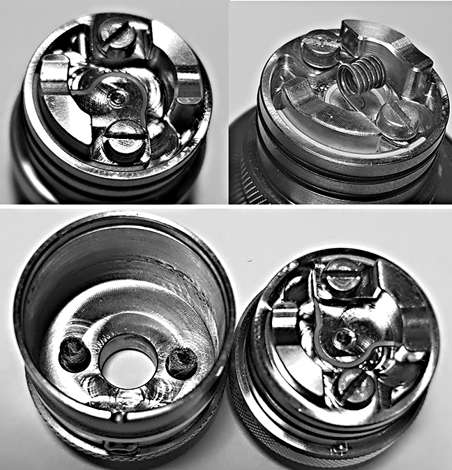 • Ich habe von außen die Dimensionen verglichen und beide Teile nah beieinander (in die gleiche der Höhe gestellt) verglichen. Nach meinem Augenmaß ist das nun schon so, dass das durch die Schraube verengte Luftloch genau die Höhe der Wicklung hat und ich merke auch nichts beim Dampfen, dass hier was anderes als ein leckerer Dampf herauskommt.