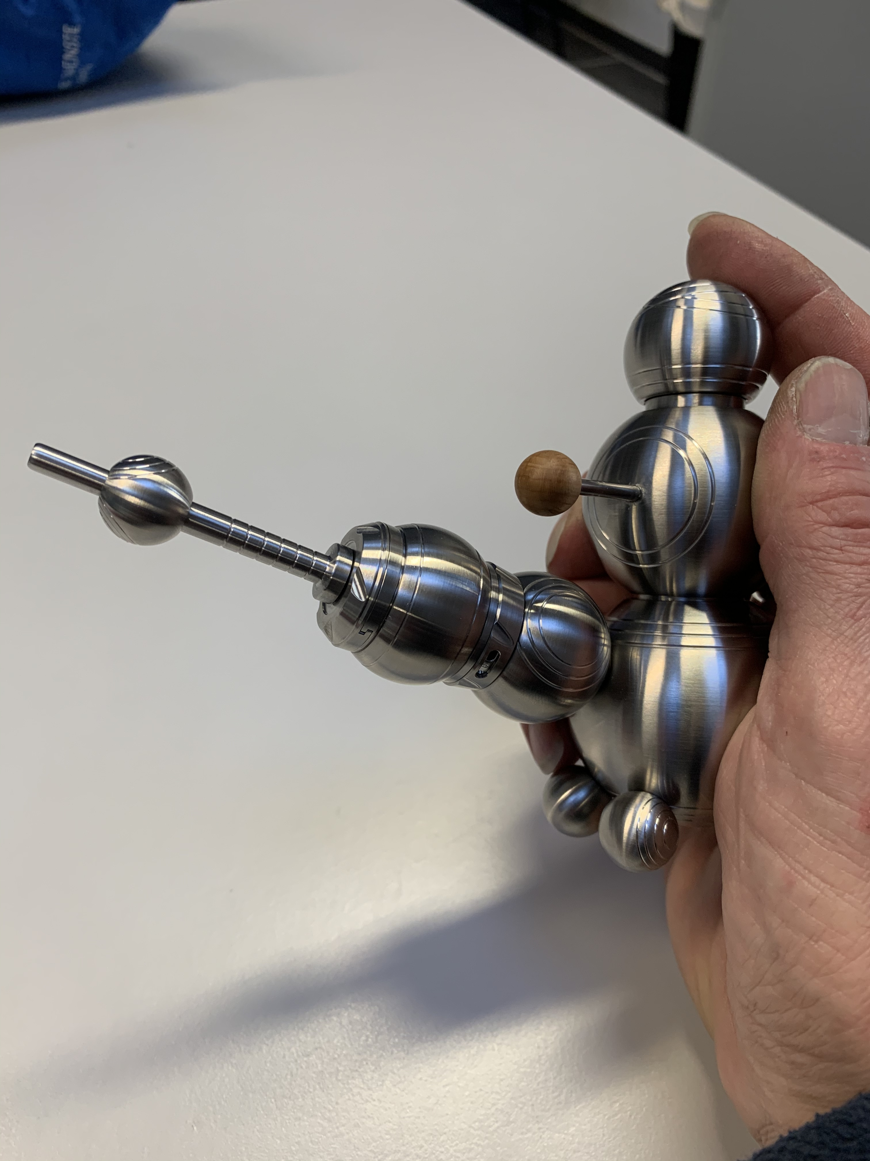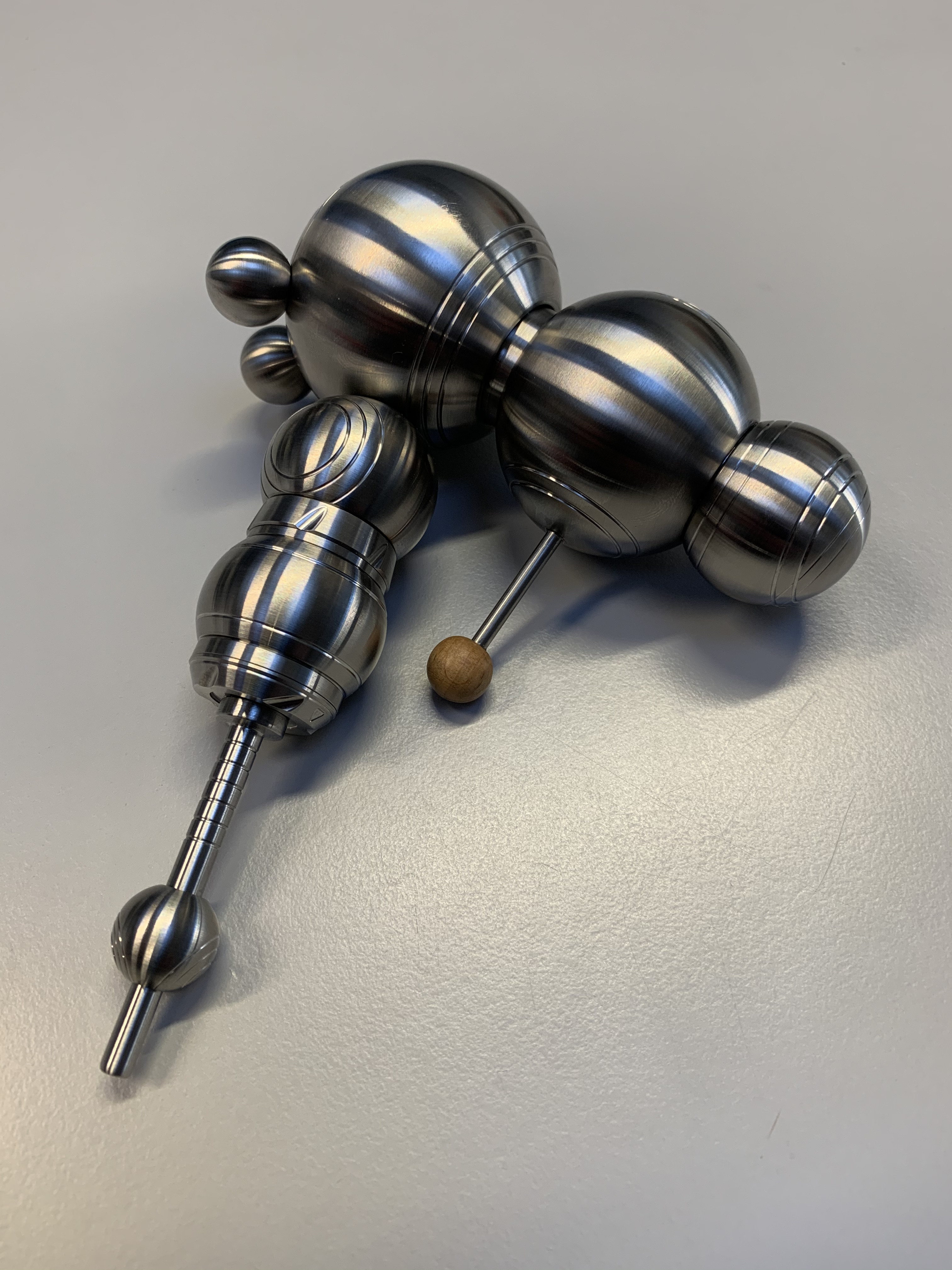 Die oberste Kugel ist der Feuertaster, mit der Mittleren kann der Feuertaster arretiert werden.