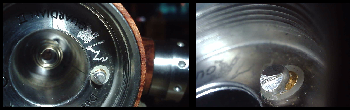 • Falls jemand beabsichtigt, eine "Guardian 2" irgendwo gebracht zu kaufen, sollte er/sie unbedingt vorher den Plus-Kontakt im Rand des Pfeifenkopfs anschauen, denn bei meiner Pfeife (und ich las, dass es mehrere Modelle betraf) brach er - wie stets bei SMOK üblich - von ganz alleine binnen weniger Tage ab. Unter dem Kontakt befindet sich eine Feder, die den Kopf des Kontakts an den Pluskontakt der aufgeschraubten Edelstahl-Schalteinheit drückt. Ich hatte mir (mich?) seinerzeit damit beholfen, einen Lötklecks dort anzubringen, der als Kontaktkopf dient aber natürlich dann fest mit dem Kontakt verbunden ist. Auf die Feder verzichtete ich und feilte den Lötpunkt so weit ab, dass es bei einem Standard-Akku genau passt. Hat seitdem gut funktioniert - aber muss so etwas sein? Was geht an SMOK-Pfeifen eigentlich nicht von alleine kaputt?