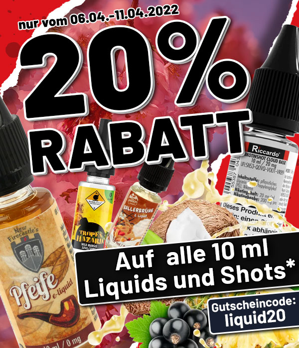 Bis einschließlich 14. April -30 % auf DIY-Liquids und -Konzentrate (Aromen) mit dem Code K10AVRIL !