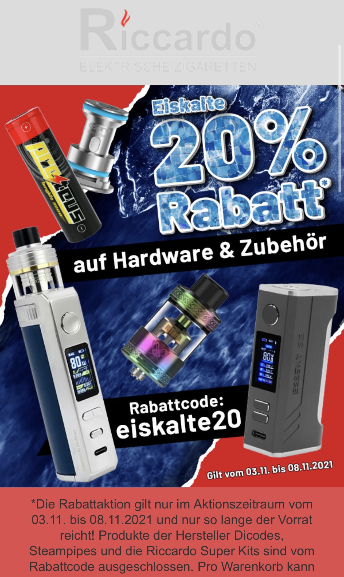 und nur noch heute DampfAlarm - 20% Rabatt auf alles außer Sale und Kioskware
