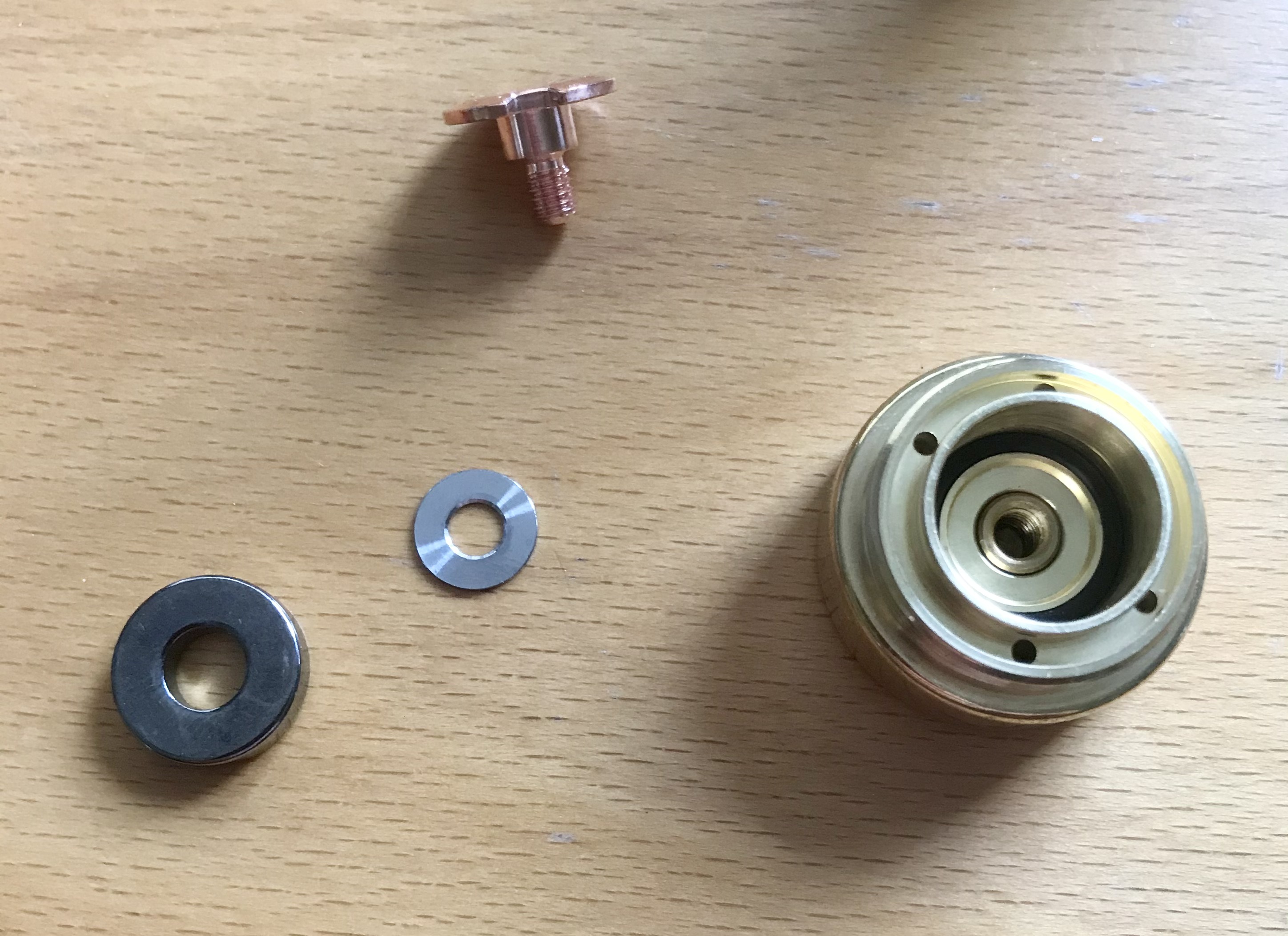 18650 Adapter, "Gabel" zum Zerlegen des Tasters, Ersatzteile: O-Ring, Magnet, Unterlegscheibe und Gummihalterung für den 1. Kontakt (CC)