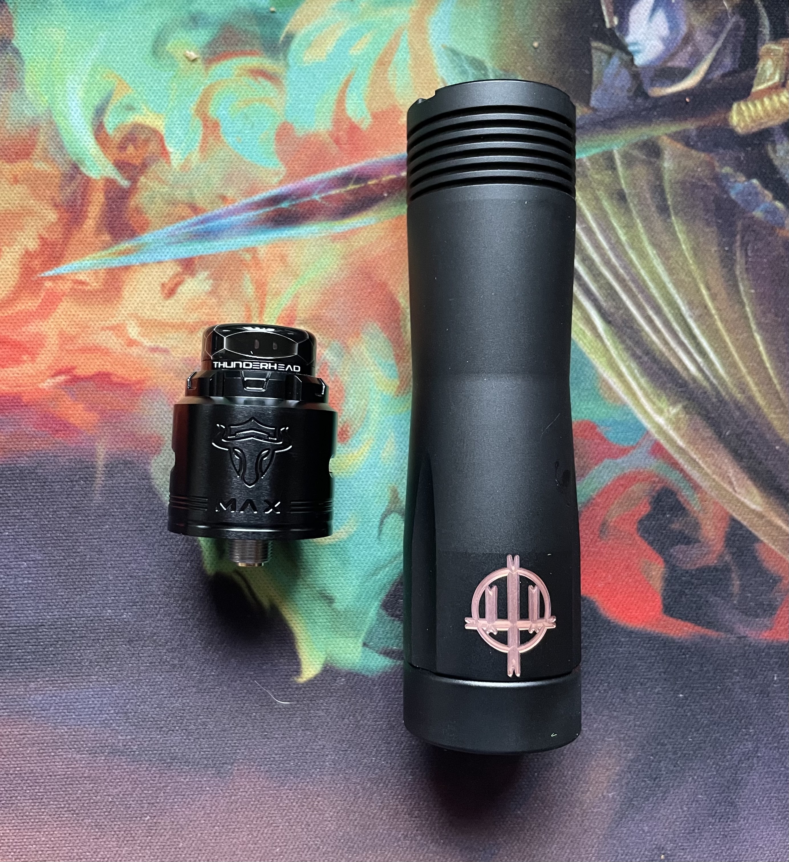 Der Mod hat oben am 25 mm Verdampferprofil und unten im Taster ausreichend Entgasungslöcher, die nach Pusttest auch gut funktionieren. Sehr schön.