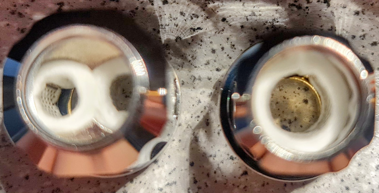 SMOK setzt hierbei auf deren dicke V18 Coils, welche in zwei Varianten angeboten werden. Einmal als Single Mesh und einmal als Dual Mesh. Die Dual Mesh Coils bieten hierbei einen etwas restriktiveren Zug und liefern meiner Meinung nach einen etwas besseren, differenzierteren Geschmack als die Singlecoil Variante.