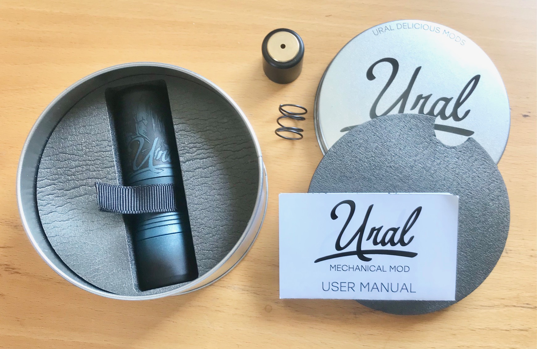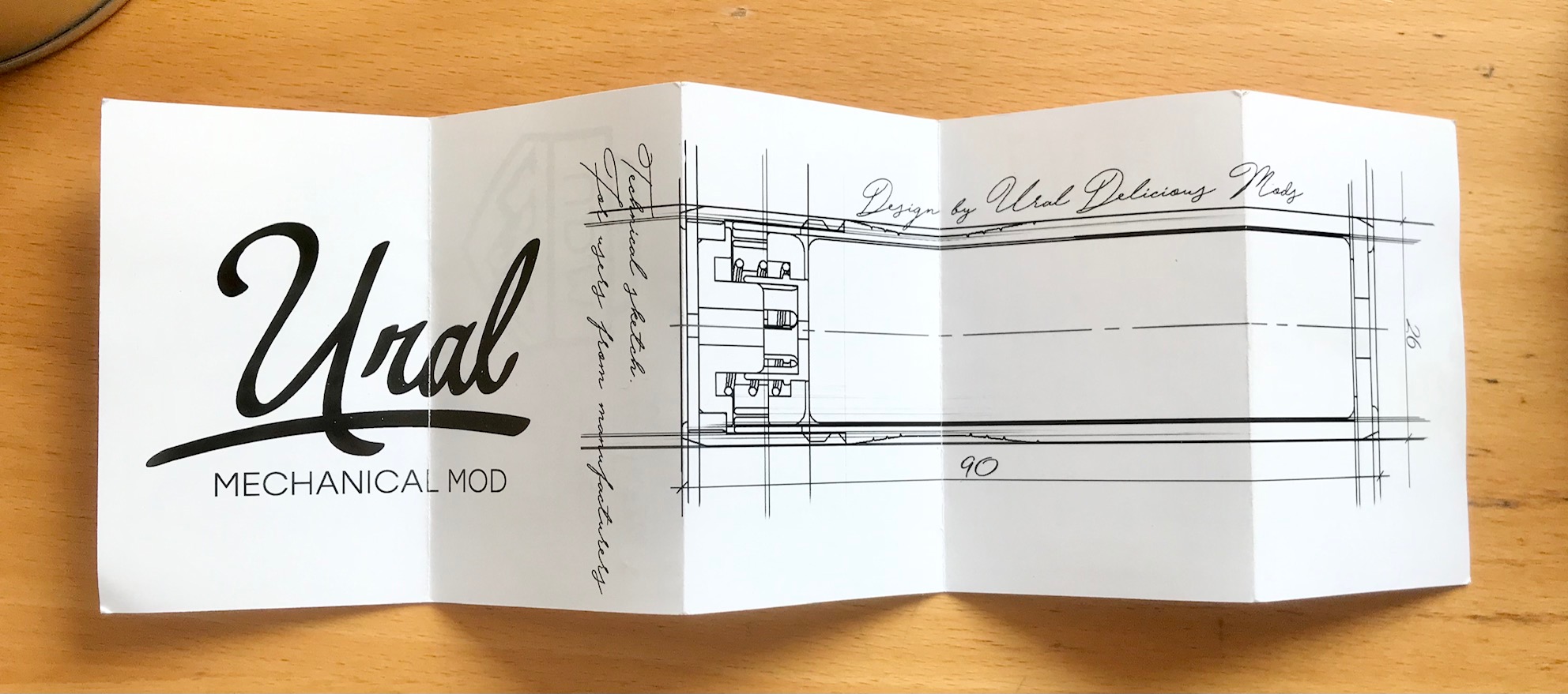 Darin ist gut gepolstert der Mod, Ersatzfeder, ein recht hochwertiger 18650-Adapter und die Anleitung/Zertifikat.