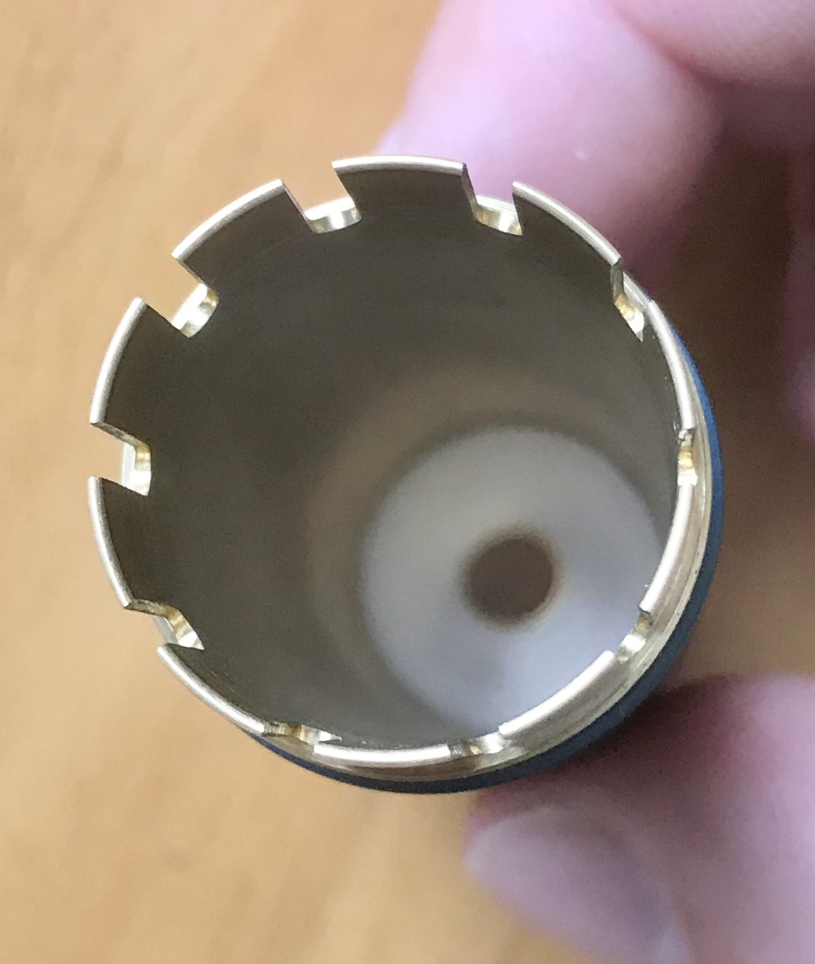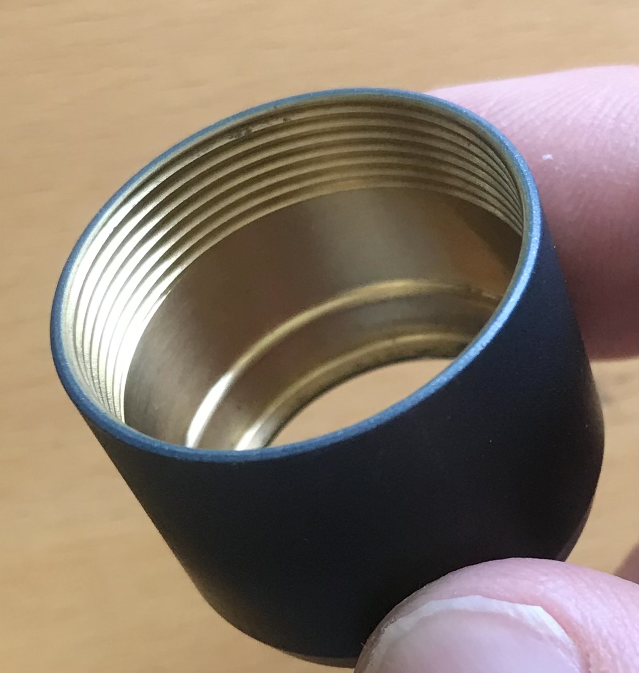 Die untere Kappe lässt sich lässt sich mit ein paar Umdrehungen abschrauben. Die Gewinde laufen absolut geschmeidig und sind auf top Niveau gefertig. Alles super poliert und entgratet.