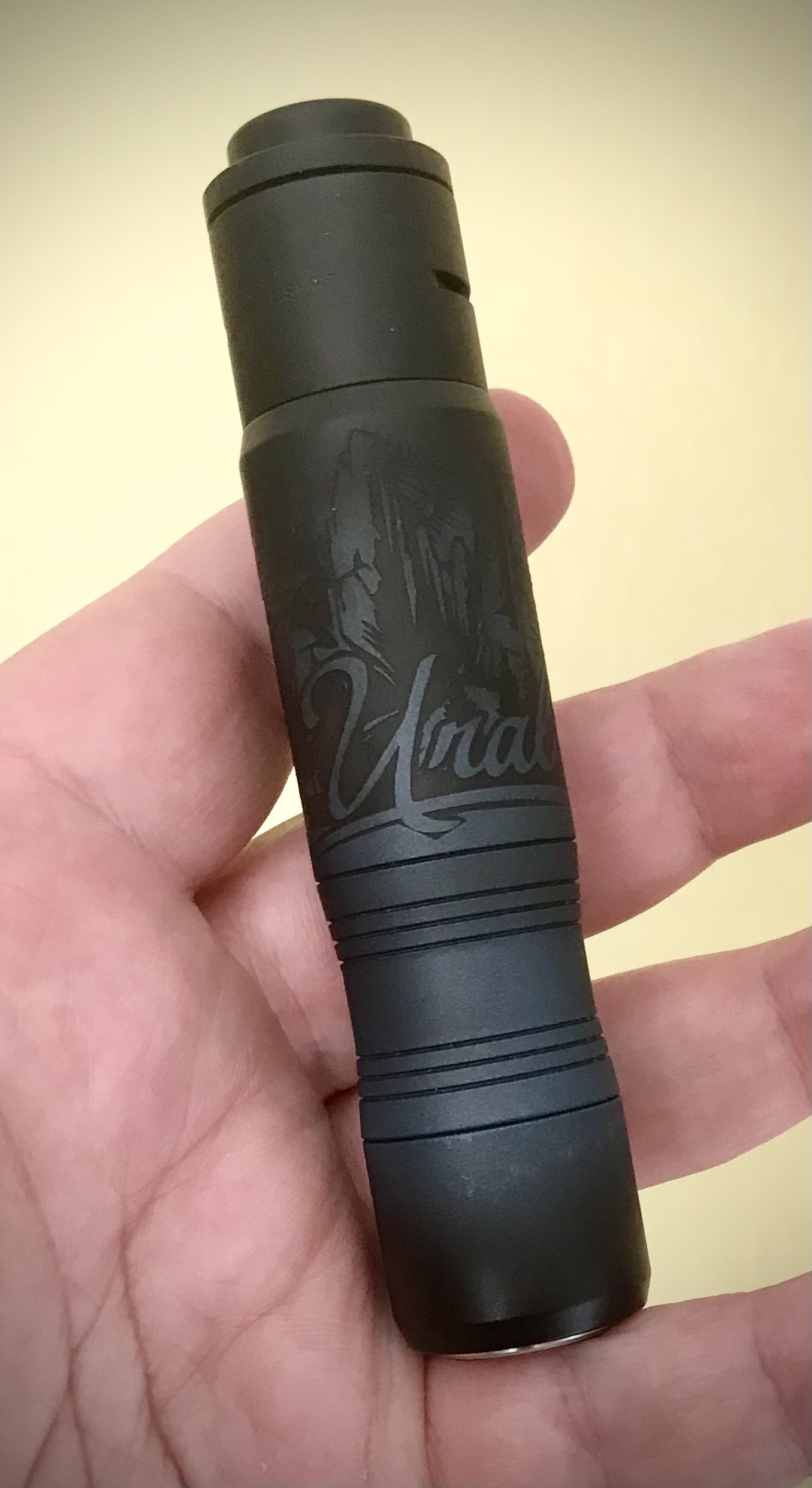 Der Hybridanschluss nimmt Verdampfer mit 24 mm auf. Ansonsten gibt es noch in der typischen Nut (gegen Ankleben des Verdampfers und zur Hitzereduzierung) das Modell mit Seriennummer eingraviert.