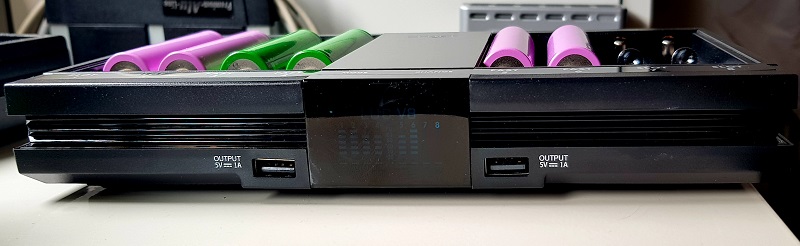 Wie man sehen kann ist es ein ziemlicher Brummer mit seinen acht Schächten. Übrigens sind zwei davon geeignet 21700 aufzunehmen. Offiziell jedenfalls. Inoffiziell passen auch vier davon hinein, wenn auch etwas fummelig.