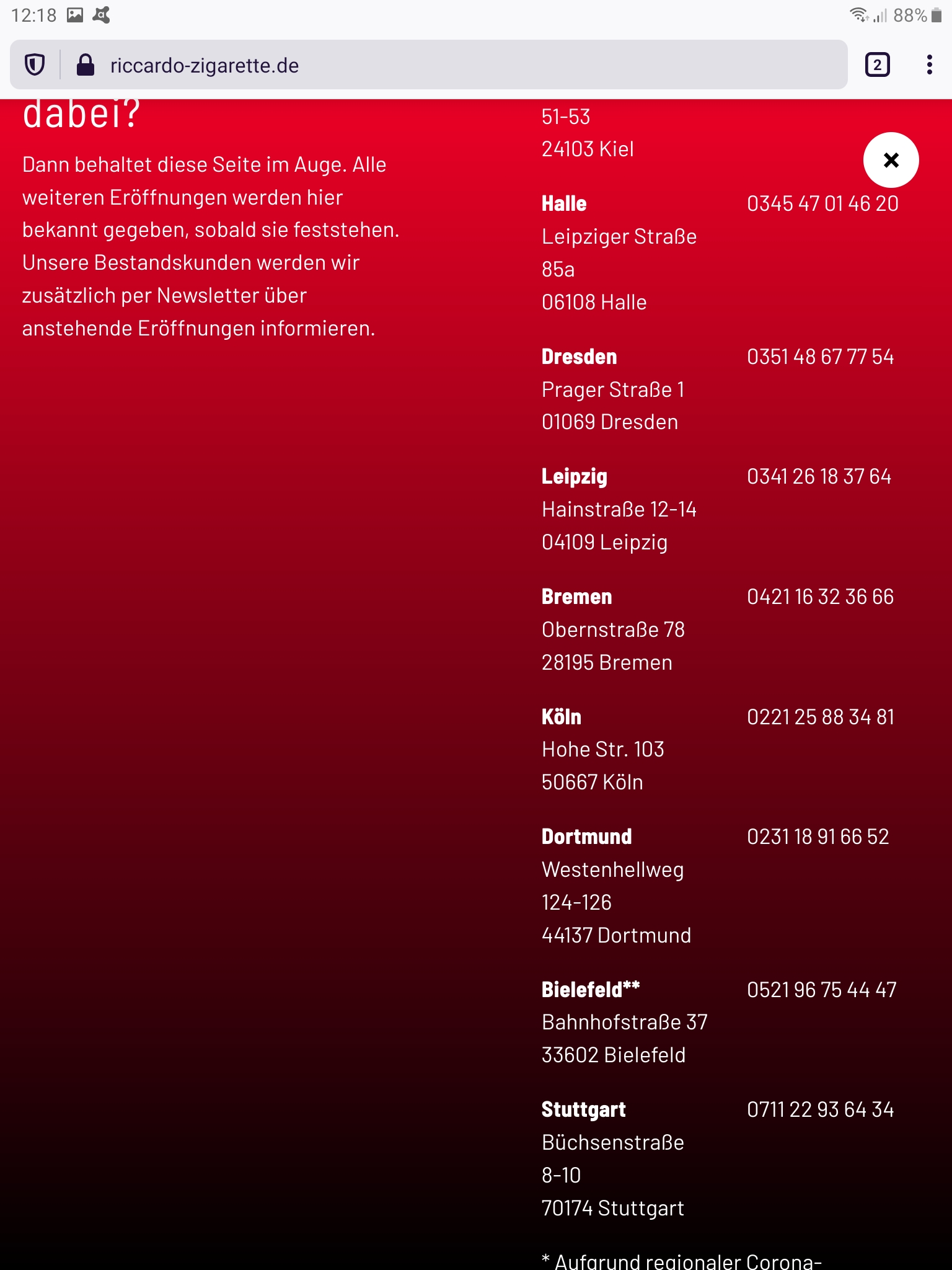 Also ich habe mal auf deren Seite nachgeschaut, Frankfurt ist da schon nicht mehr aufgelistet.