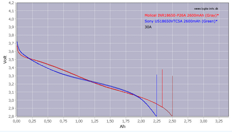 Will man nen Allrounder, dann ist der P26 die bessere Wahl, will man nur bis X-Ampere Strom abgeben(rein-Mtller etc.), dann gehen wieder andere Akkus ins rennen, die die charmantere Entladekurve haben. Der LG HG2 ist bei 20A der bessere Langläufer. Die VTC5a kommt zwar am Anfang härter, lässt aber schneller nach. Dampft man mech bis nix mehr kommt, ist der HG2 die bessere Wahl, wechselt man eh schon bei 3,5V sollte mein weiterhin zum VTC5A oder zum Molicel greifen.