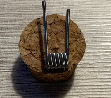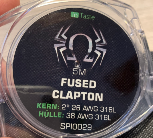 Jetzt ging es ans wickeln. Ich hatte mir extra mal den Draht „Fused Clapton 26AWG/316L besorgt. Erfahrung mit diesem hatte ich noch nicht und wollte mal was neues ausprobieren. Ich bin ja nicht so der Coilbauer, sondern nutze oft die Prebuilt Coils von VandyVape. Kanthaldraht und Edelstahldraht zum selber wickeln ja, damit habe ich Erfahrung. Also, los gings mit dem wickeln des neuen Drahtes. Hui, gar net so einfach den einfach mal so zu wickeln da man ja aufpassen muss den nicht zu verdrehen. Habe ich mir schon a,bisserl schwer getan. Aber nach dem dritten Anlauf klappte es dann. Runddraht geht da eindeutig leichter. 6 Windungen die dann bei 0,32Ohm landeten kam dabei heraus. Aus glühen, kurz warten und schließlich Watte rein. Hier verwendete ich die Super Sorb Cotton Cord. Das einfädeln und ausdünnen ging gut, aber wahrscheinlich habe ich hierbei einen Fehler gemacht. Später mehr dazu.
