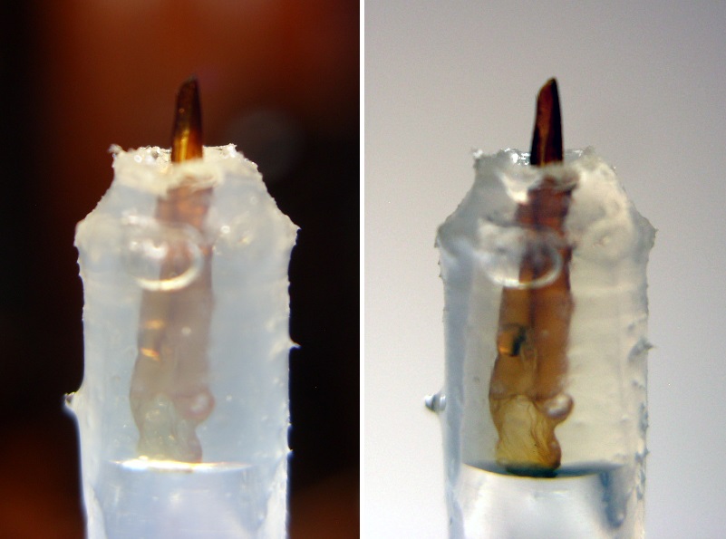 Neugierig, wie ich nun mal bin, fischte ich es mit einer Pinzette heraus und untersuchte dieses "Lebewesen".