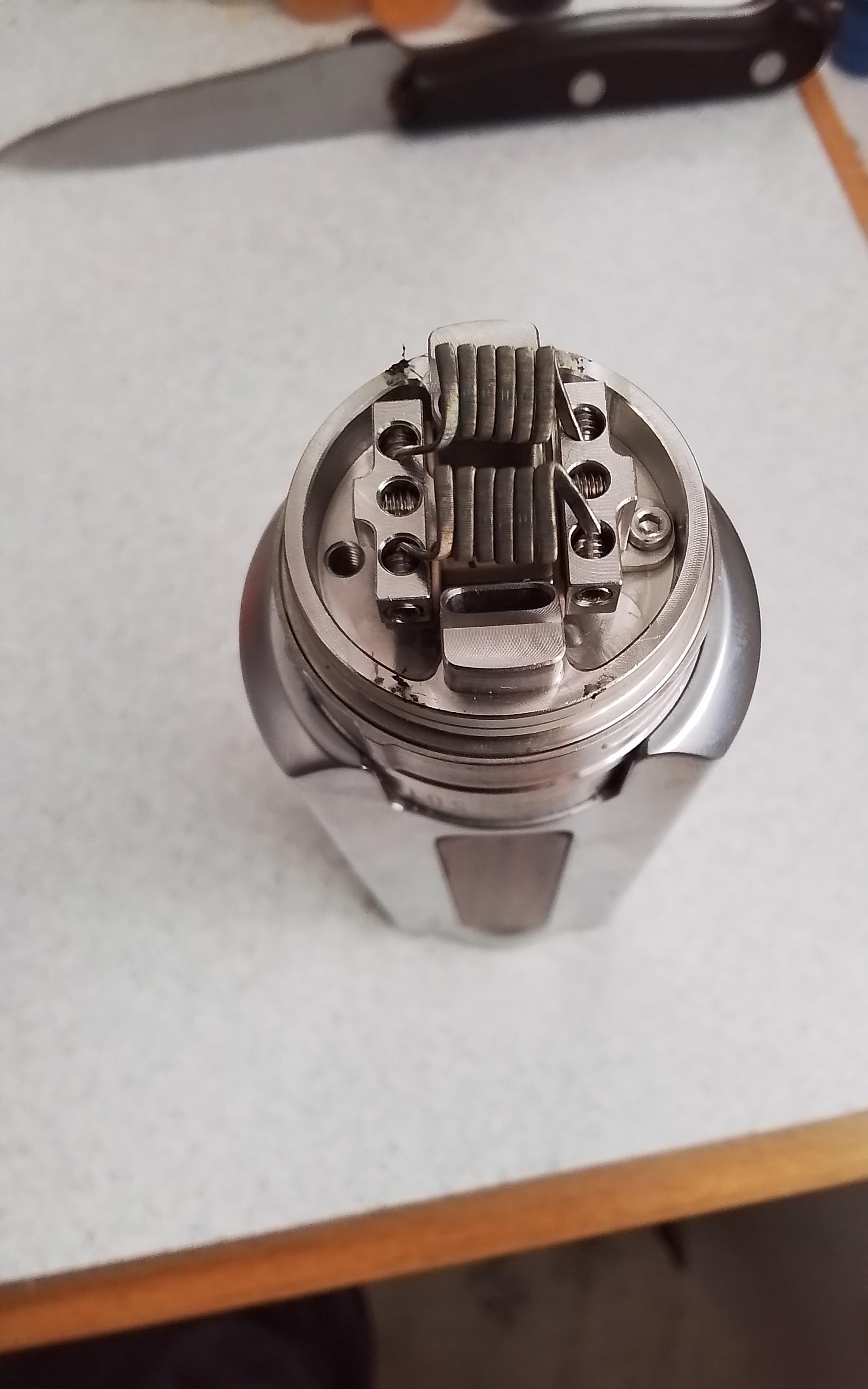 Ich habe nicht die beiliegenden Coils verwendet sondern Triple Fused Claptons mit 3mm, 6 Windungen und 0,2 Ohm im Dualcoilbetrieb. Die Coils habe ich außerdem gespaced.
