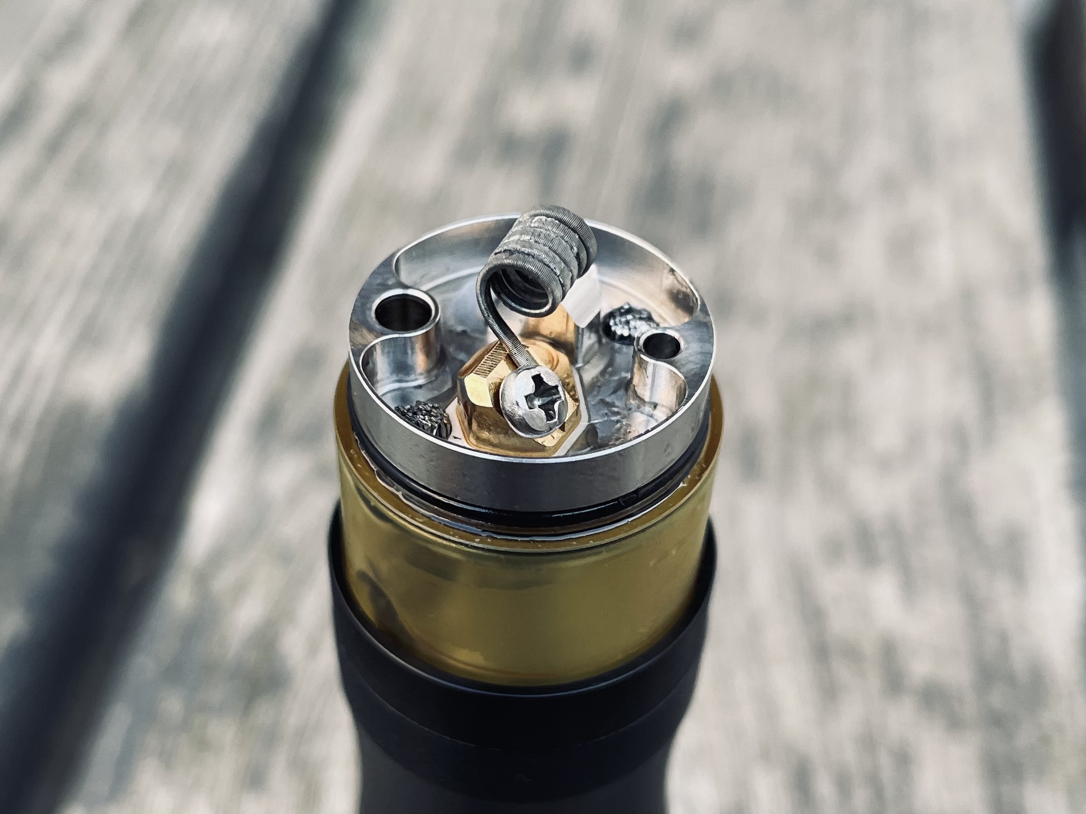 Wie beim RDA sind die Posts im 90Grad-Winkel angeordnet und das Einsetzen der Coil geht wirklich leicht von der Hand, wenn man einmal das Prinzip verstanden hat. Die Coil sitzt dann automatisch auf der richtigen Höhe und muss nur noch gerade ausgerichtet werden.
