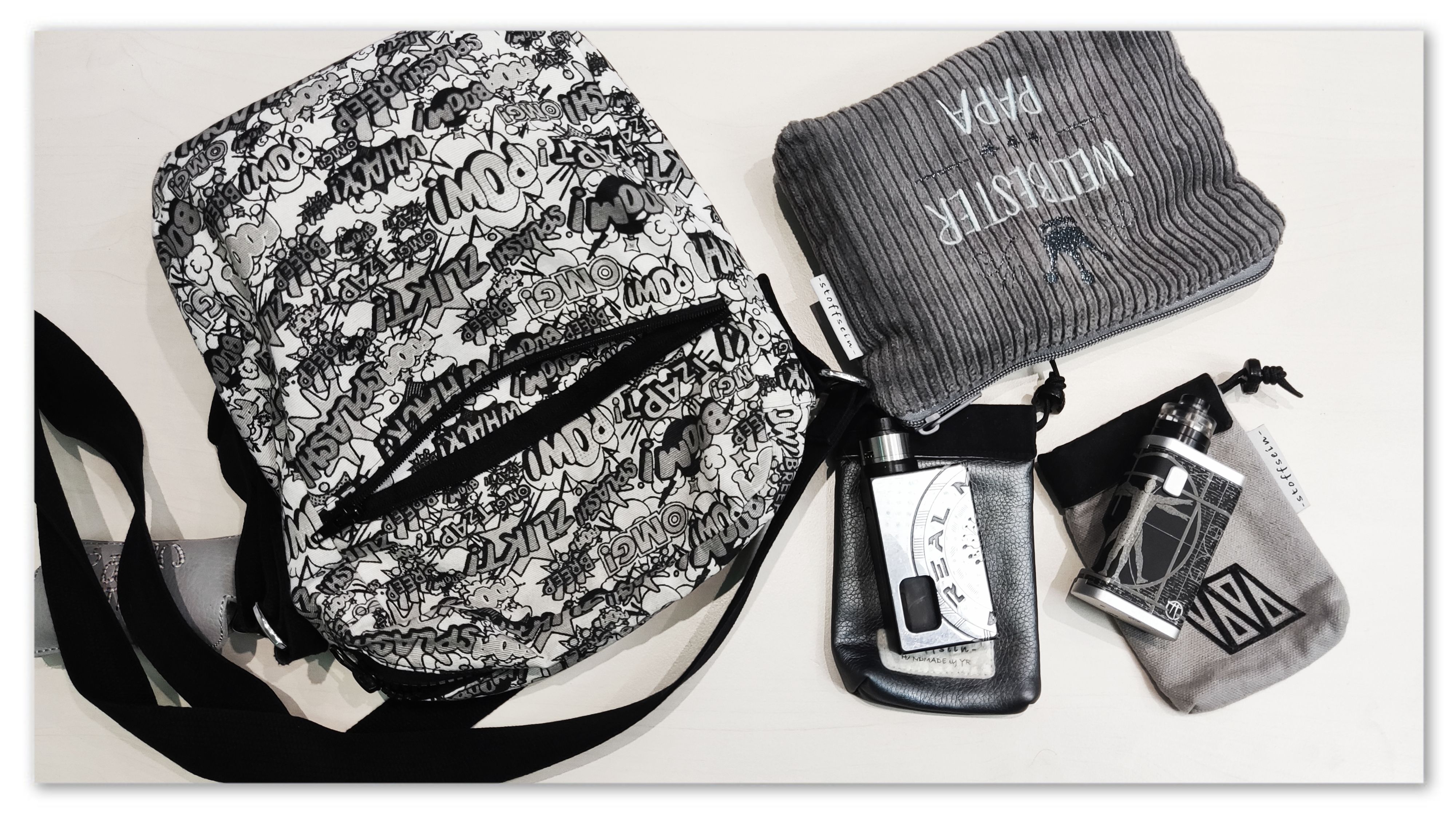 Sollte ich da jetzt länger unterwegs sein wie zum Beispiel ein Grillabend oder sowas nehme ich gerne mal bissel mehr krams mit wie zum Beispiel Akkus, Coils, Liquid - was man eben so braucht.