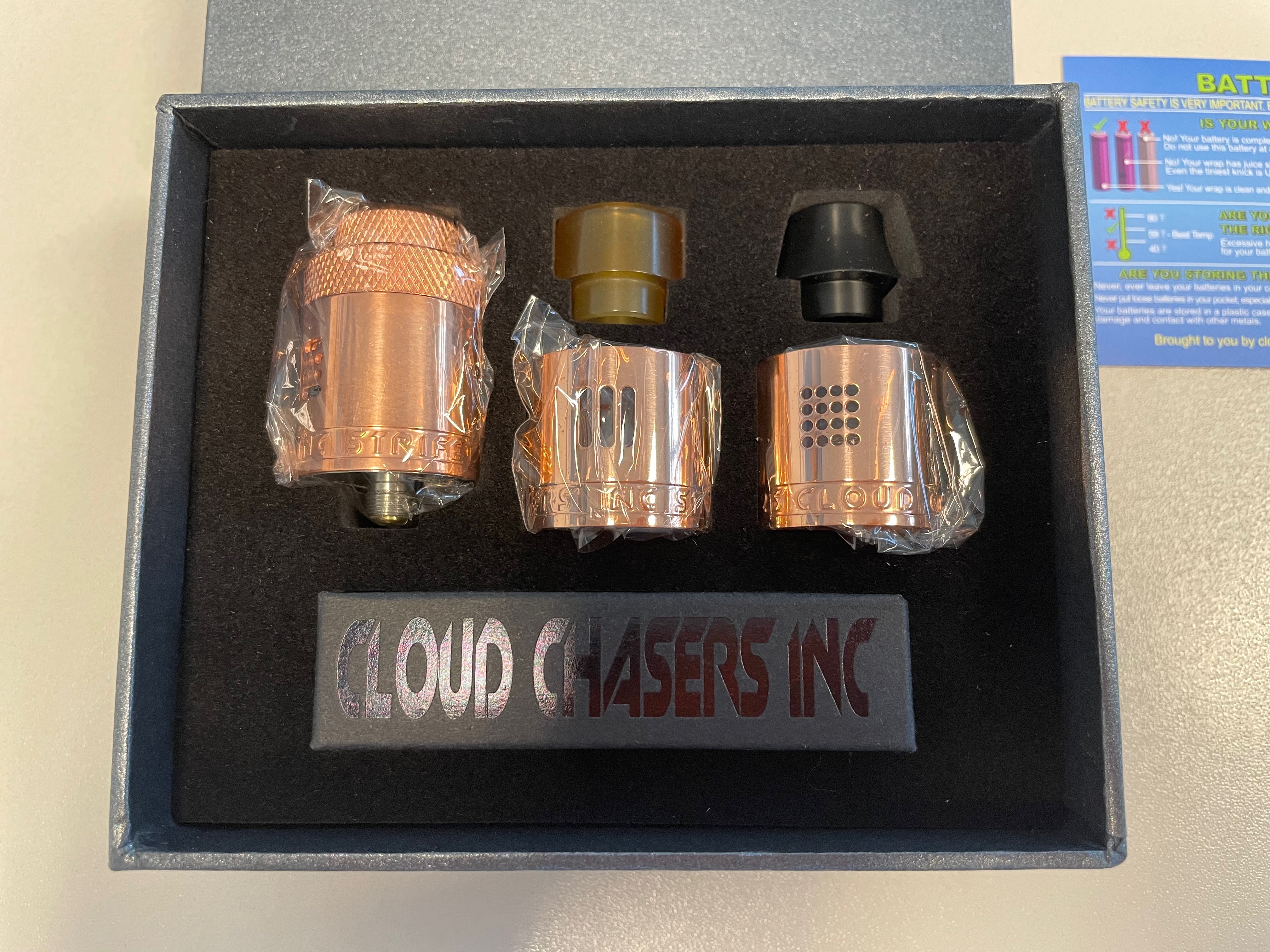 Es handelt sich um den Cloud Chasers Inc. Strife 25 RDA ebenfalls in copper.