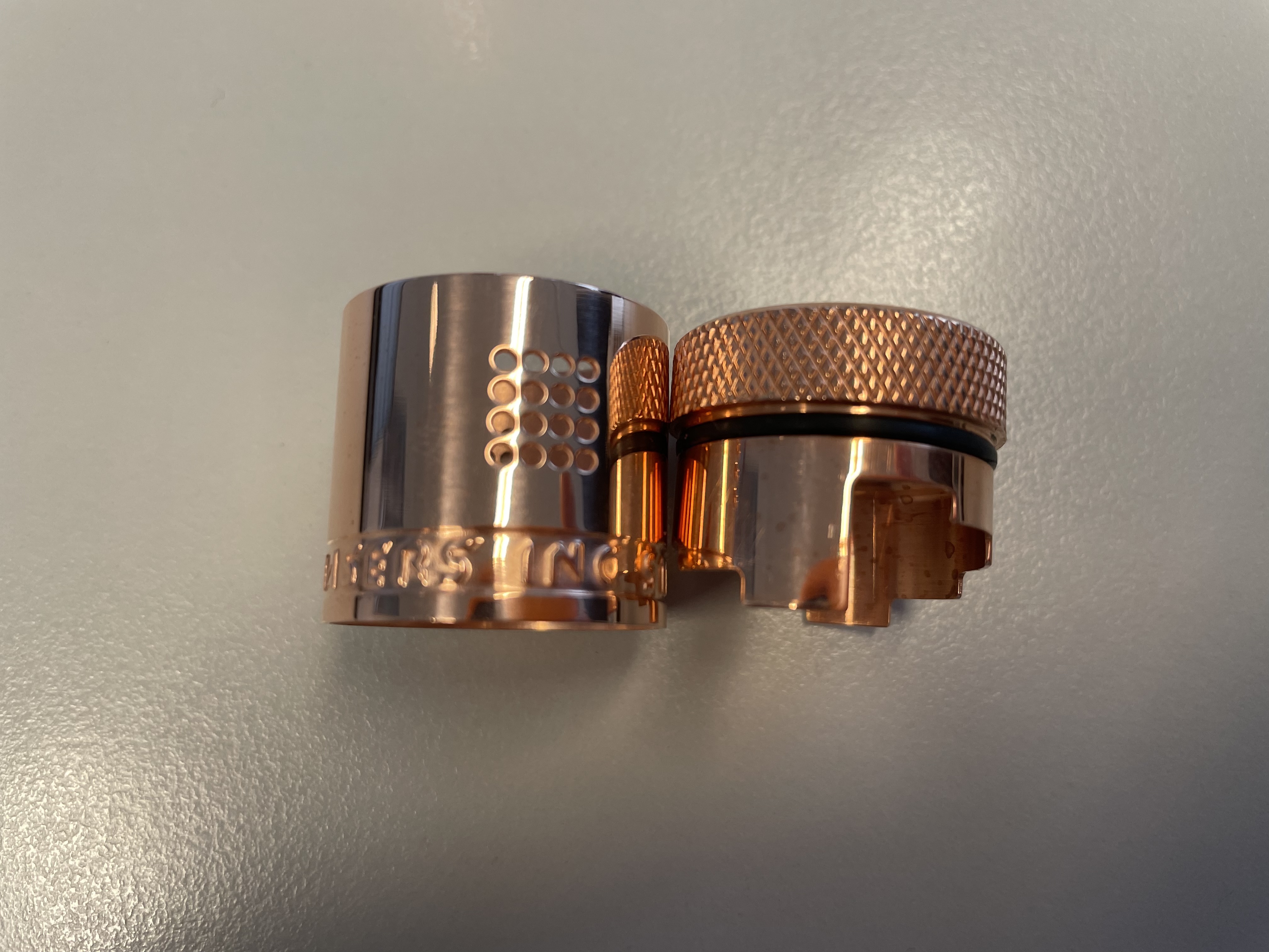 Bei den beiden Varianten brass und copper bestehen auch TopCap und DripTip aus den brass bzw. copper, bei den anderen Farben sind diese Teile aus Alu.