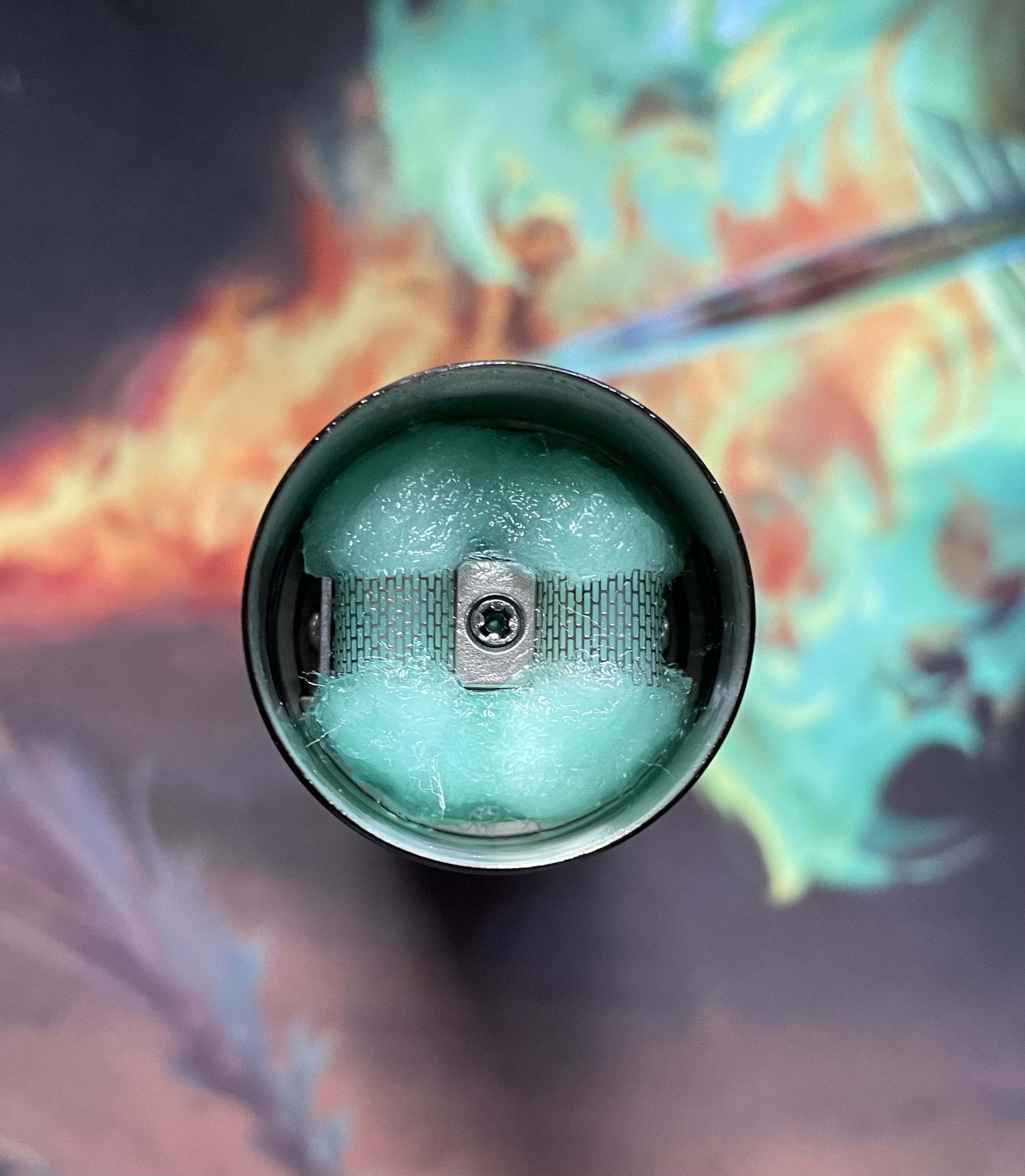 Ich habe die Wotofo Mesh Watte (6mm) verwendet, welche ich der Länge nach geteilt habe. Genau die richtige Wattemenge 👍