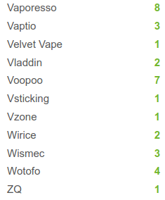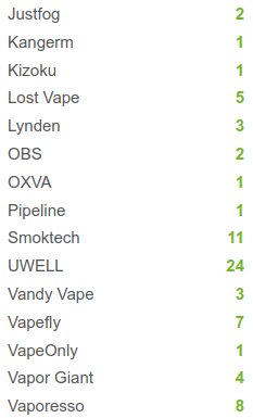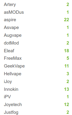 Dies ist beispielhaft eine Liste der verschiedenen Verdampferköpfe pro Hersteller, welche Intaste aktuell im Sortiment hat: