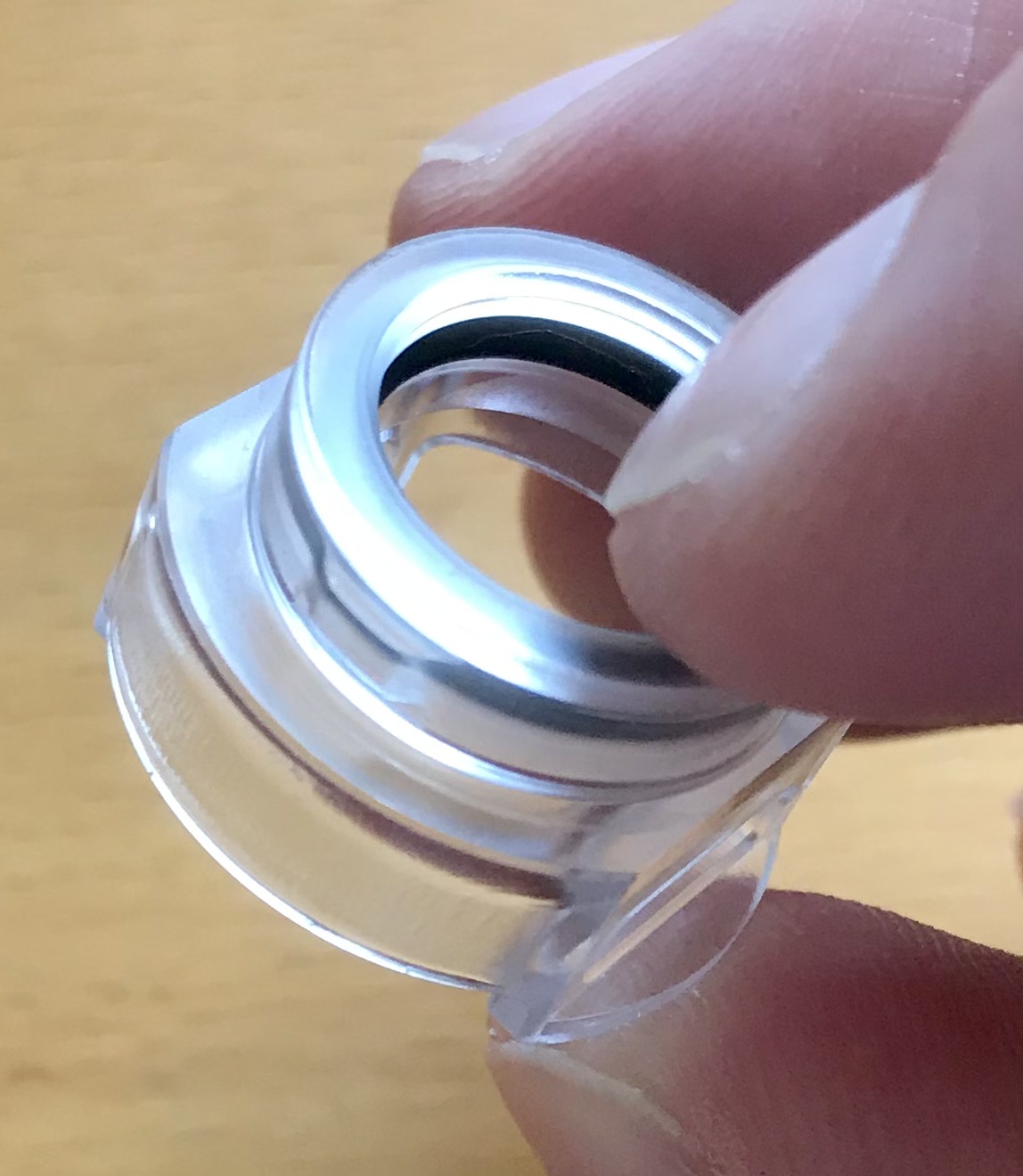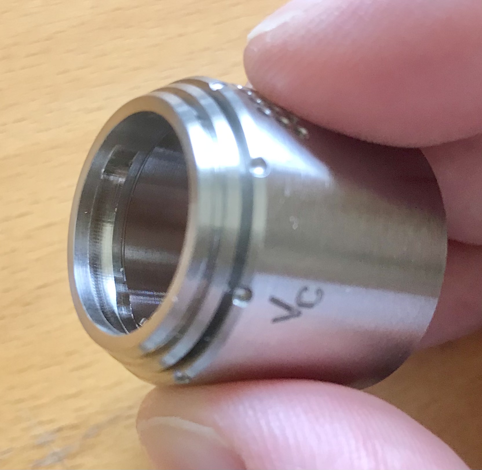Hier ist nochmal die Nut von oben zu sehen. Damit lässt sich die Topcap drehen und die Luftzufuhr regeln ohne dass der Einsatz verdreht wird.