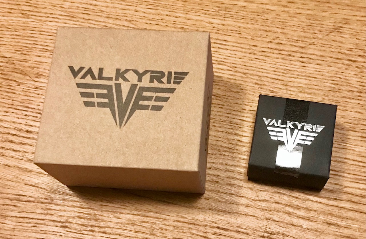 Geliefert wird in der üblich braunen VC-Pappschachtel, die für die Größe des Verdampfers gar zierlich erscheint. Daran geklebt war noch ein kleines schwarzes Pappschächtelchen.