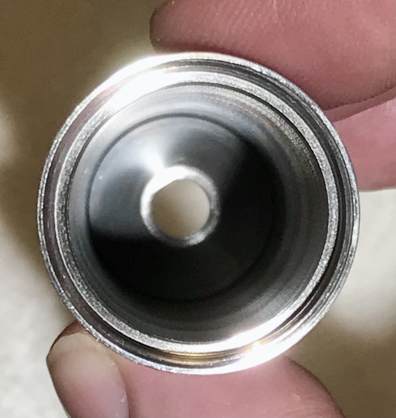 Der 510er Anschluss ist ein Hybrid und die typische Einfräsung drumherum - gegen Anhaften des Verdampfers und geringere Wärmeübertragung - ist sehr dezent ausgeführt.