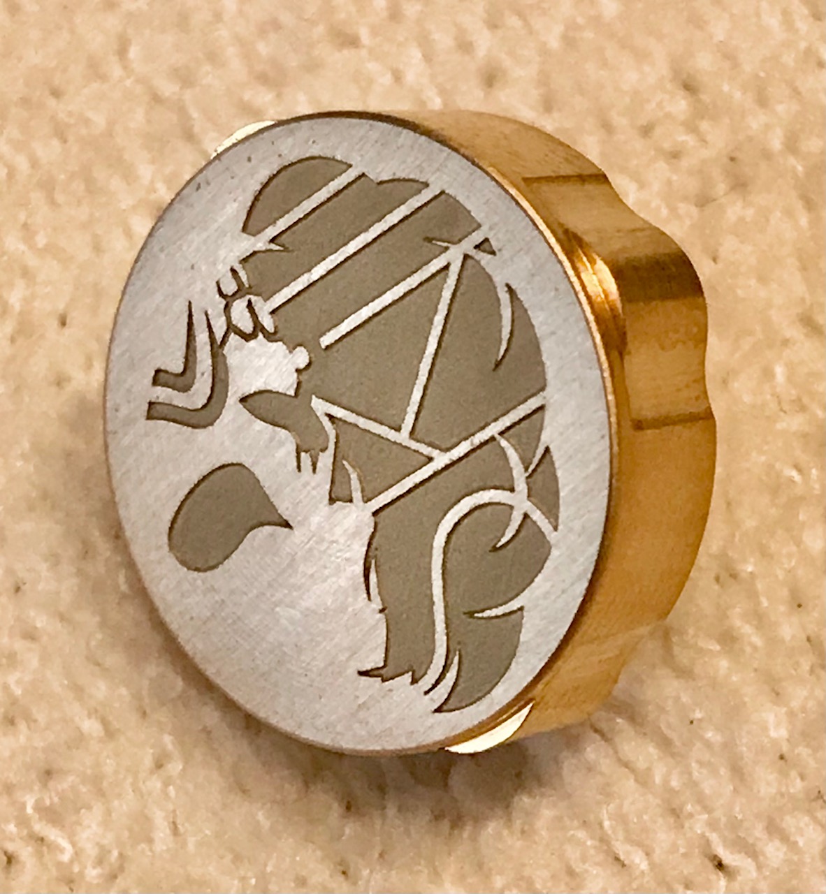 Der Button ist bei allen Ausführungen identisch aus Messing. Was das Motiv darstellen soll, konnte ja schon geklärt werden. Ich hab sehr lange dafür gebraucht. ![]()