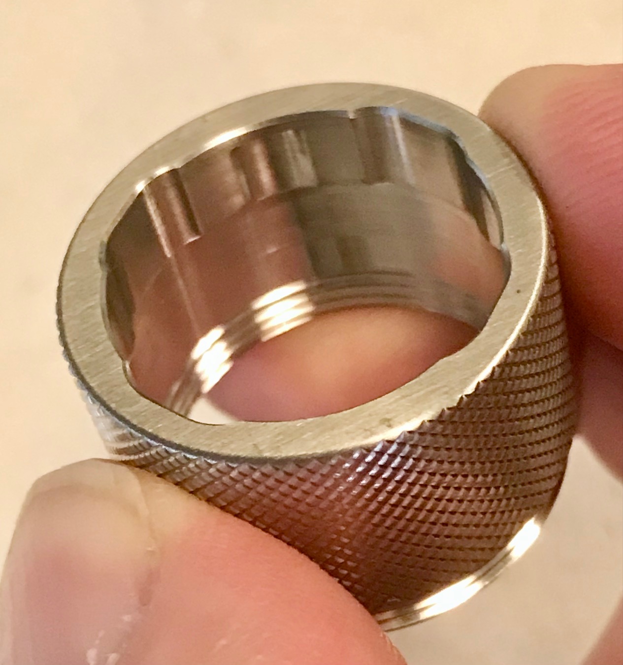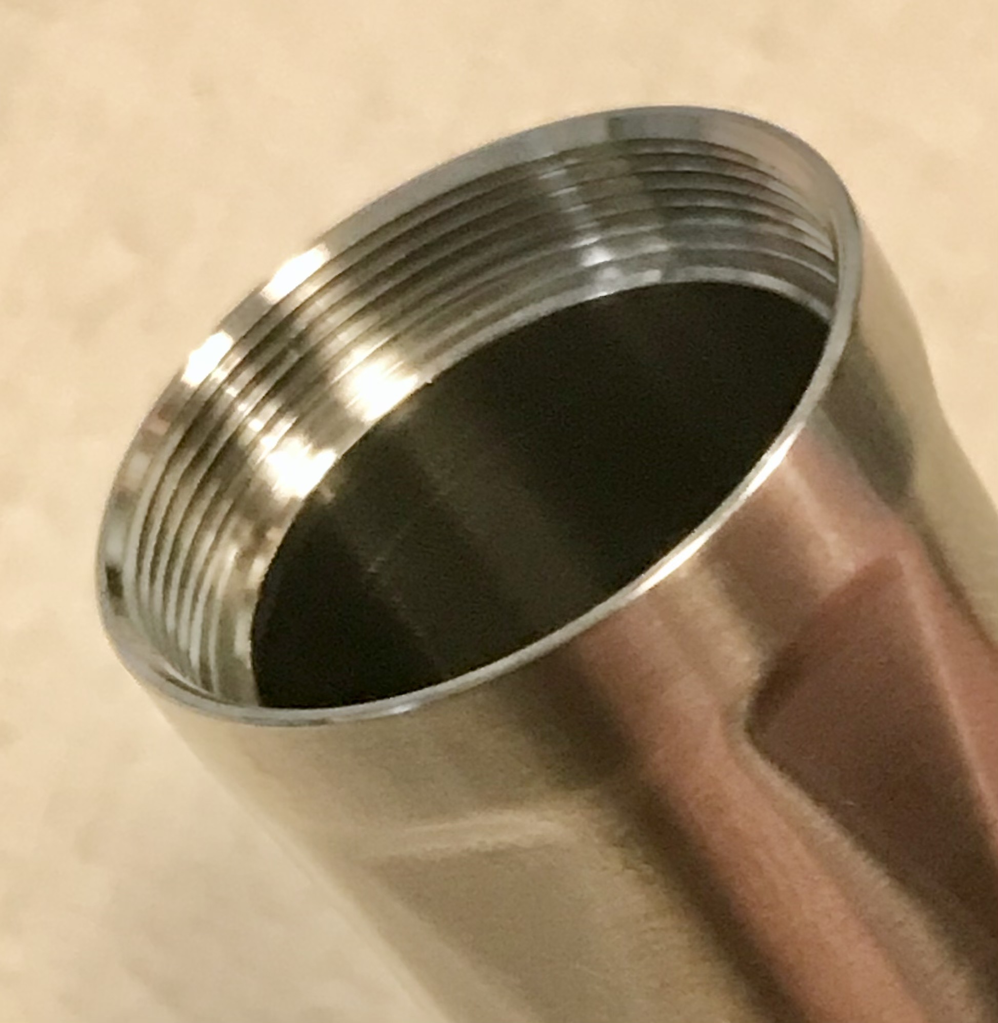 Die Gewinde gehen nicht ganz so buttrig, obwohl auch hier alles sauber entgratet und poliert ist.