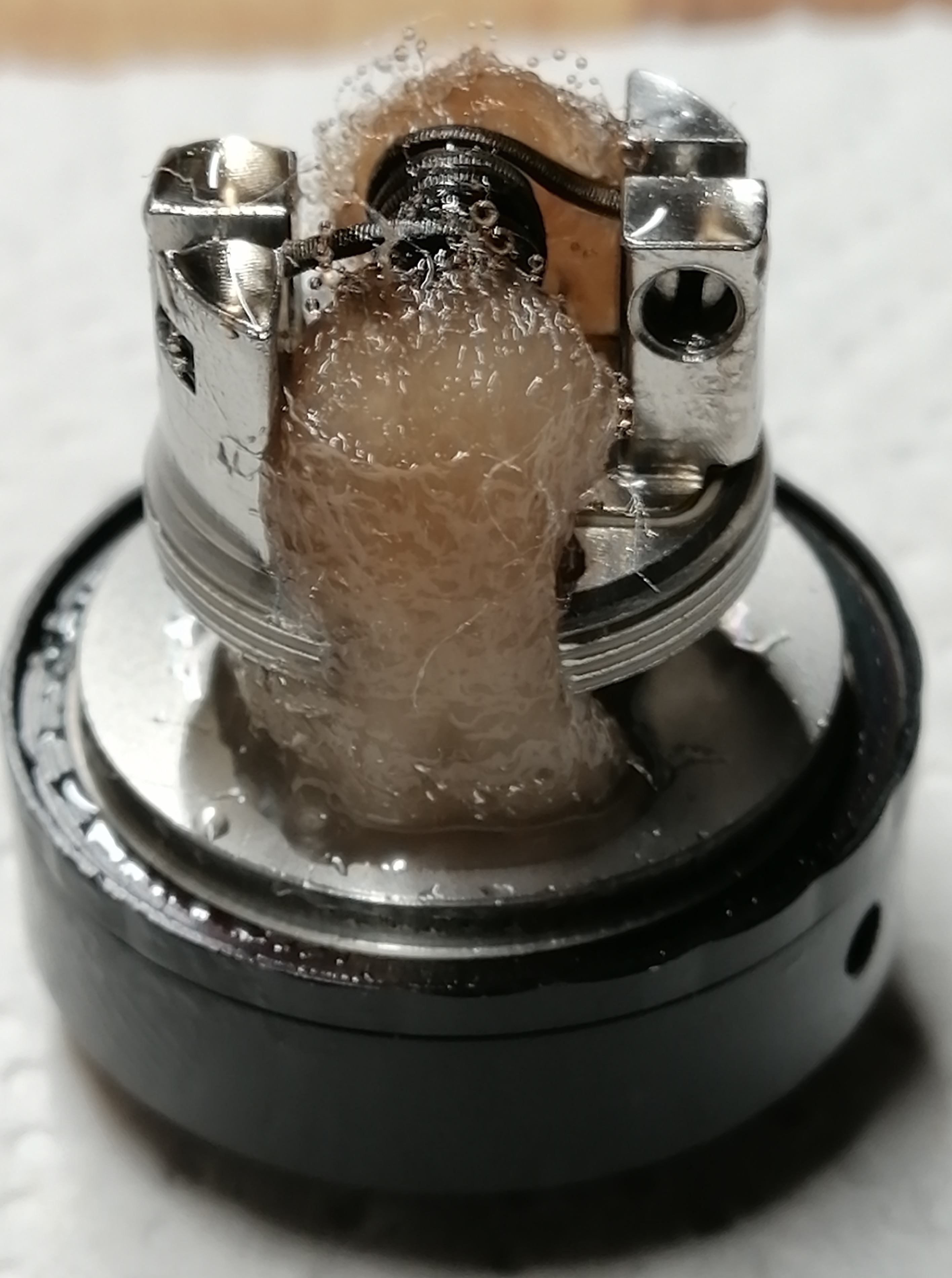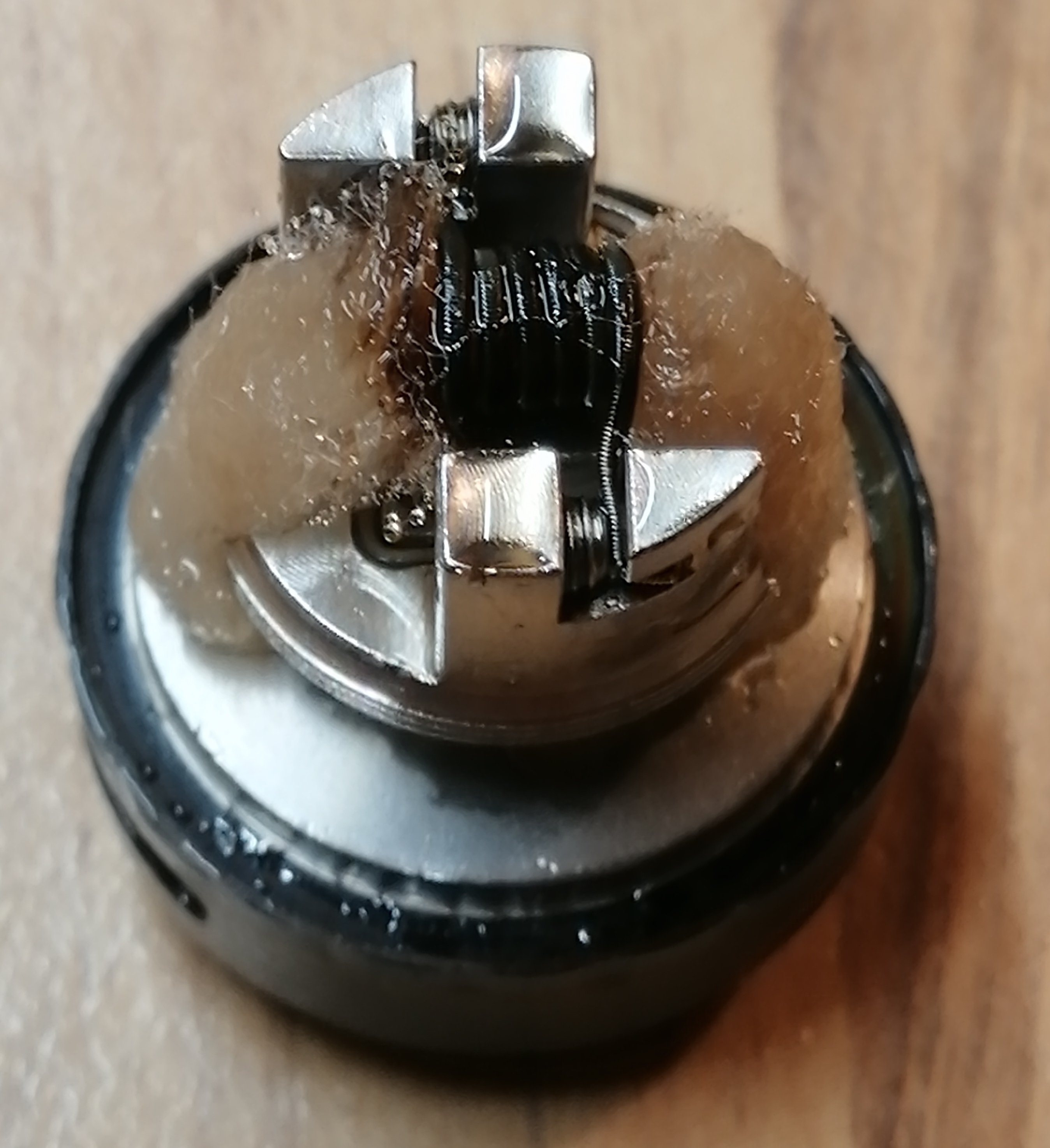 Für mein Auge sieht das nach ein bisschen zu wenig Watte aus, das darf ruhig noch etwas strammer in der Coil. Dann macht die Watte auch mehr so einen Bogen, wie ein umgedrehtes U.