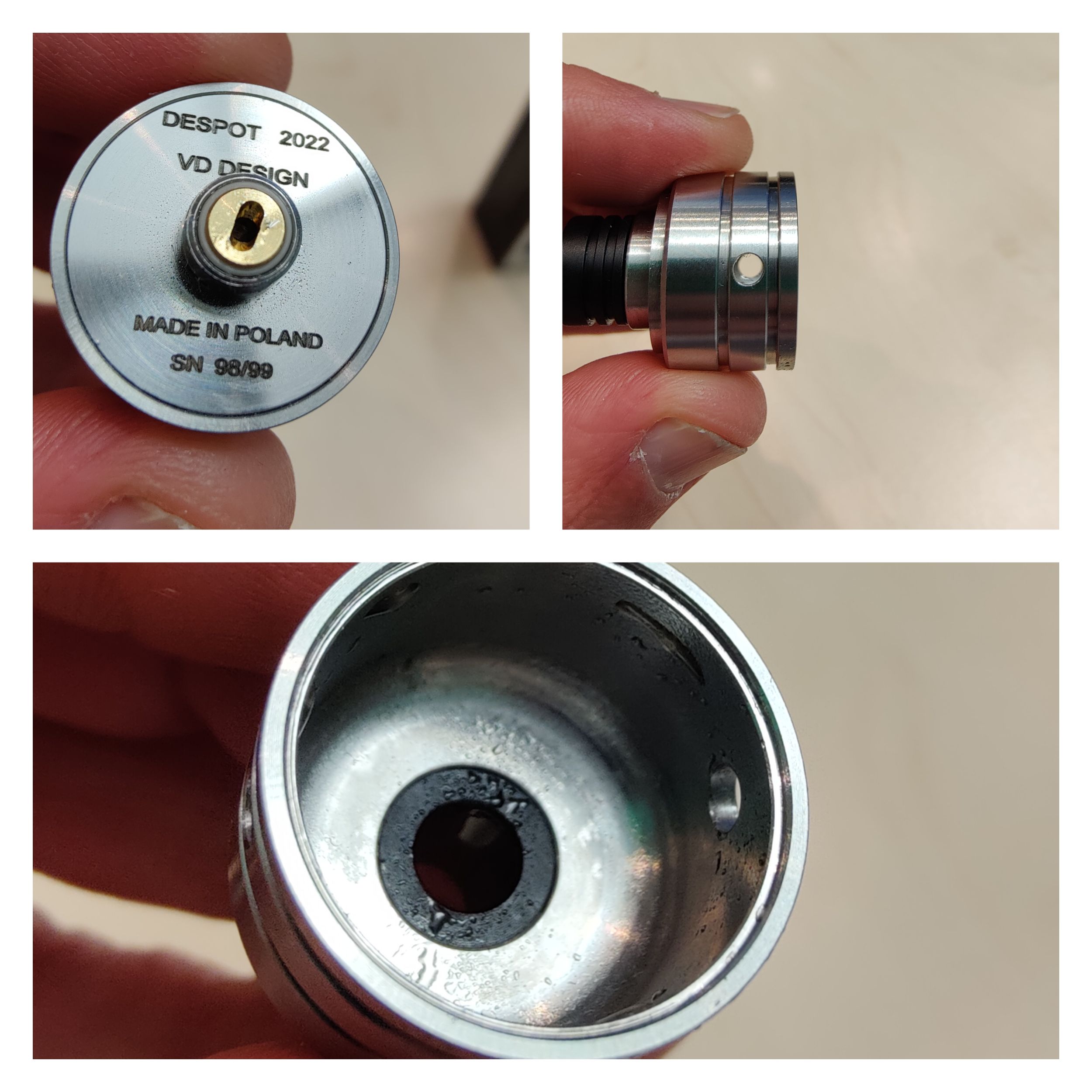 Der Despot ist ein 22mm Verdampfer der von vorne herein auf eine Auflage von 99 Stück beschränkt ist. Gefertigt wurde er aus SS316L von Hussar in Polen, ebenso nicht unbekannt.