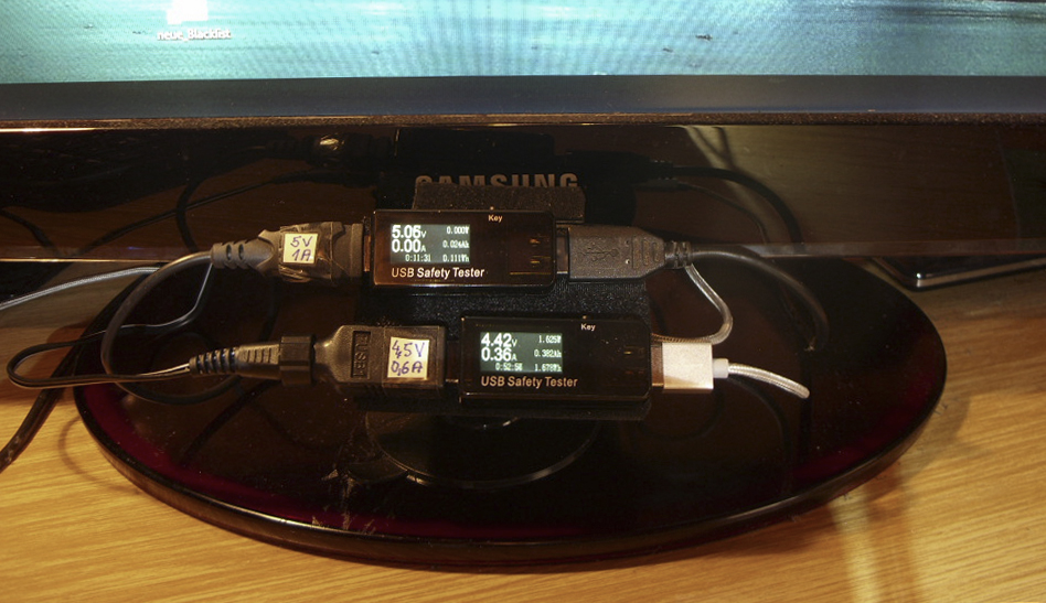 Wenn schon über USB laden - man kommt ja bei festverbauten Akkus nicht drumherum - dann aber bei mir zu Hause nur überwachtes und kontrolliertes Laden. Mit den in USB-Stick-Größe "USB Saftely Testern" (für rund 10 Euro) sehe ich zusätzlich auch prima, wie viel Strom ich welchem Akku spendiert habe. Ist für die kleinen 18350er Akkus der Pfeifen interessant. Aber natürlich auch für die großen, normalen Akkus. Ein nettes Tool, nicht teuer, dafür hilfreich. Nutze ich seit knapp zwei Jahren fast täglich.