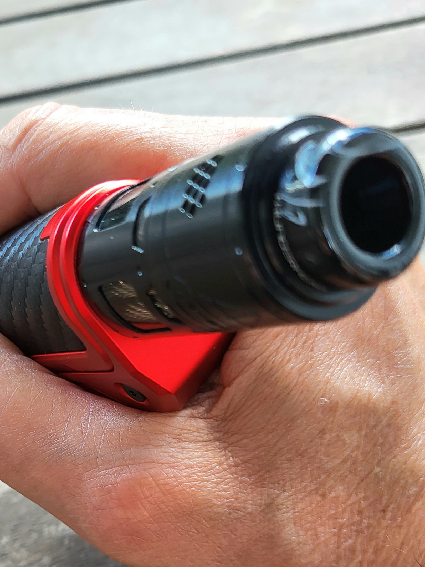 Verdampfer mit 28mm kann man natürlich drauf schrauben, dass sähe aber albern aus. Für mich passt am besten der Artemis mit rund 24mm, der Helheim mit rund 25mm geht aber auch noch. Das kommt daher weil die Kanten abgerundet sind.